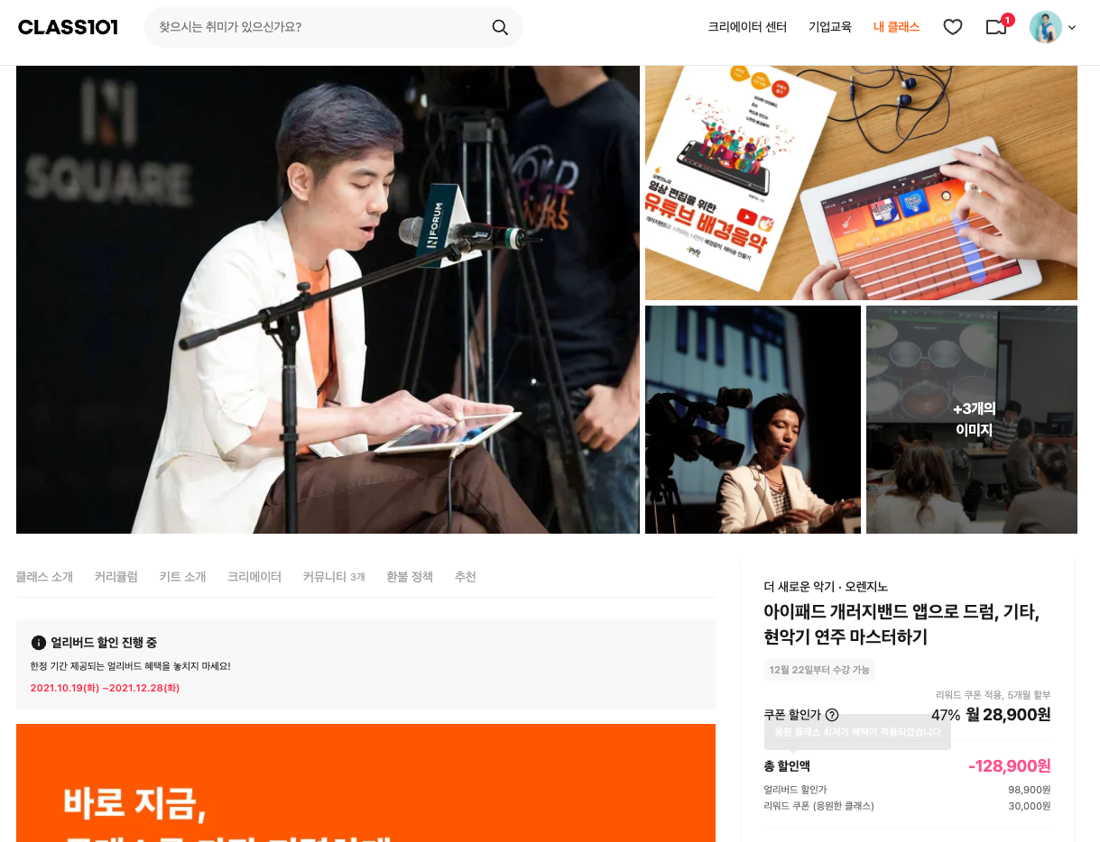 어제였던 2021년 10/19 오후 8시에 얼리버드 오픈을 했기에 방금 오픈된 신규 클래스에도 이 강의가 보이네요.