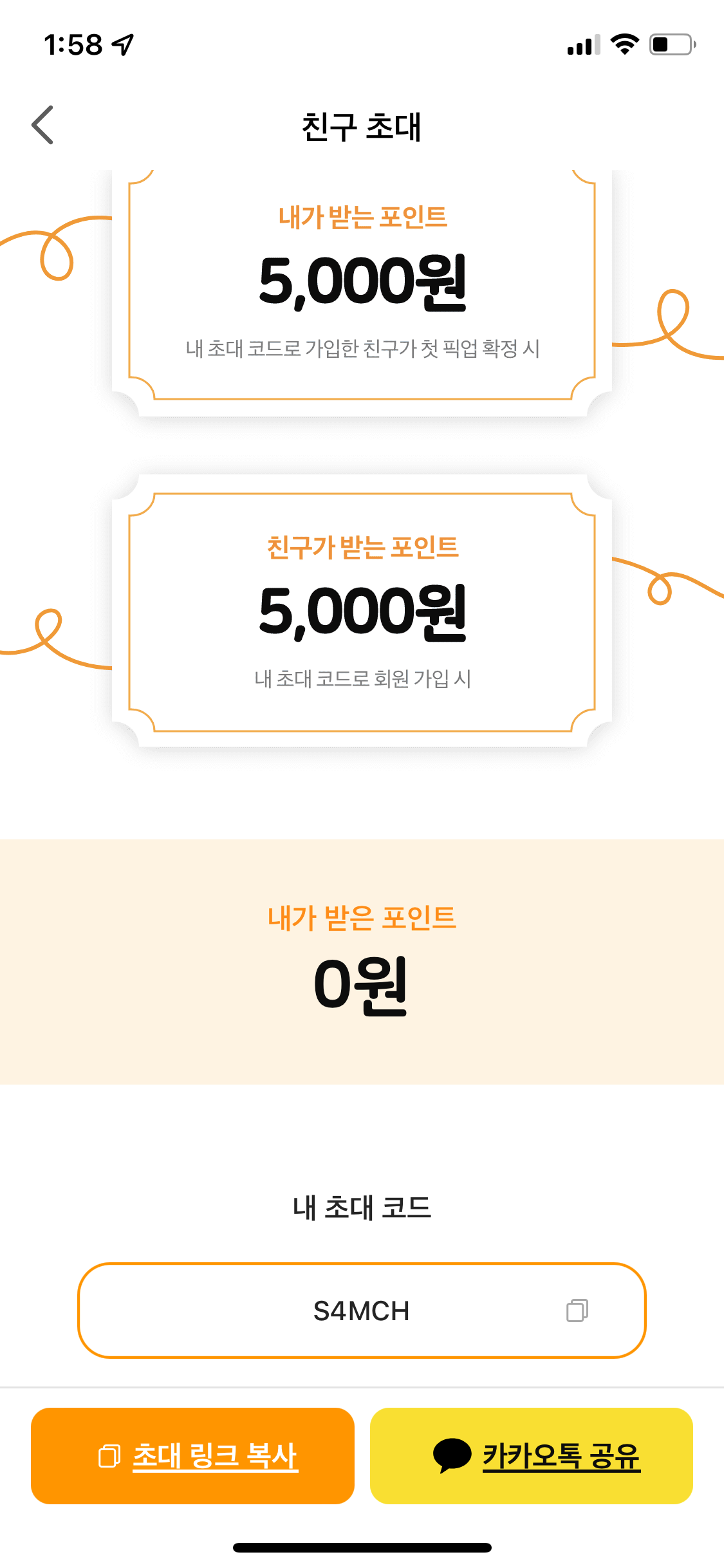 데일리샷 가입하실 땐 초대코드 S4MCH 를 입력하셔서 5천원 포인트 받으신 채로 이용하세요!