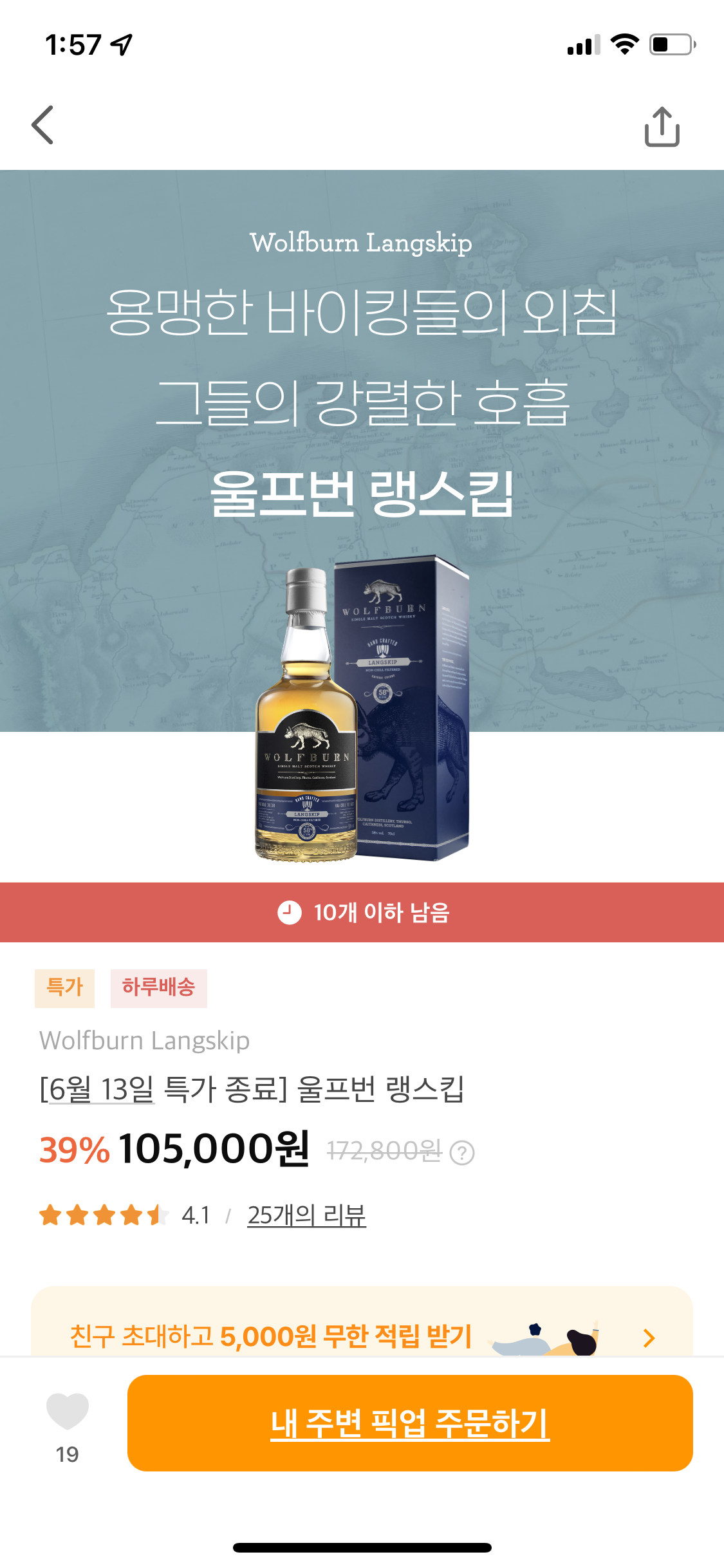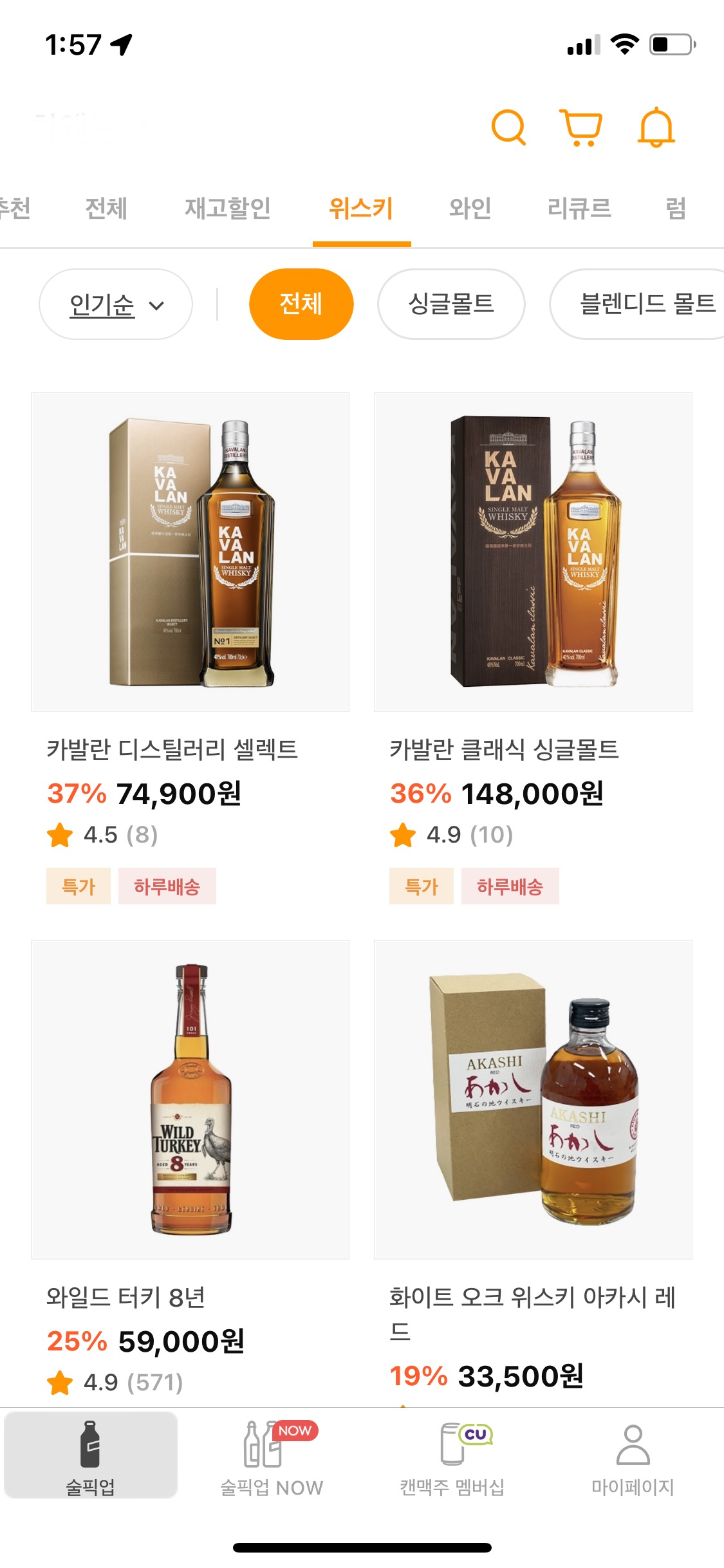 저는 강원도 시골로 이사온 뒤 코스트코나 남대문 주류상가, 주라샵 등 위스키를 좋은 가격에 구할 수 있는 방법들이 사라진 상태라 이런 데일리샷 배송 서비스가 특히나 귀합니다. 가끔 정말 괜찮은 가격의 위스키가 나올 때가 있거든요. 몇달 전 글렌알라키12년을 꽤 할인했는데 지금은 그 가격을 볼 수 없지만요.