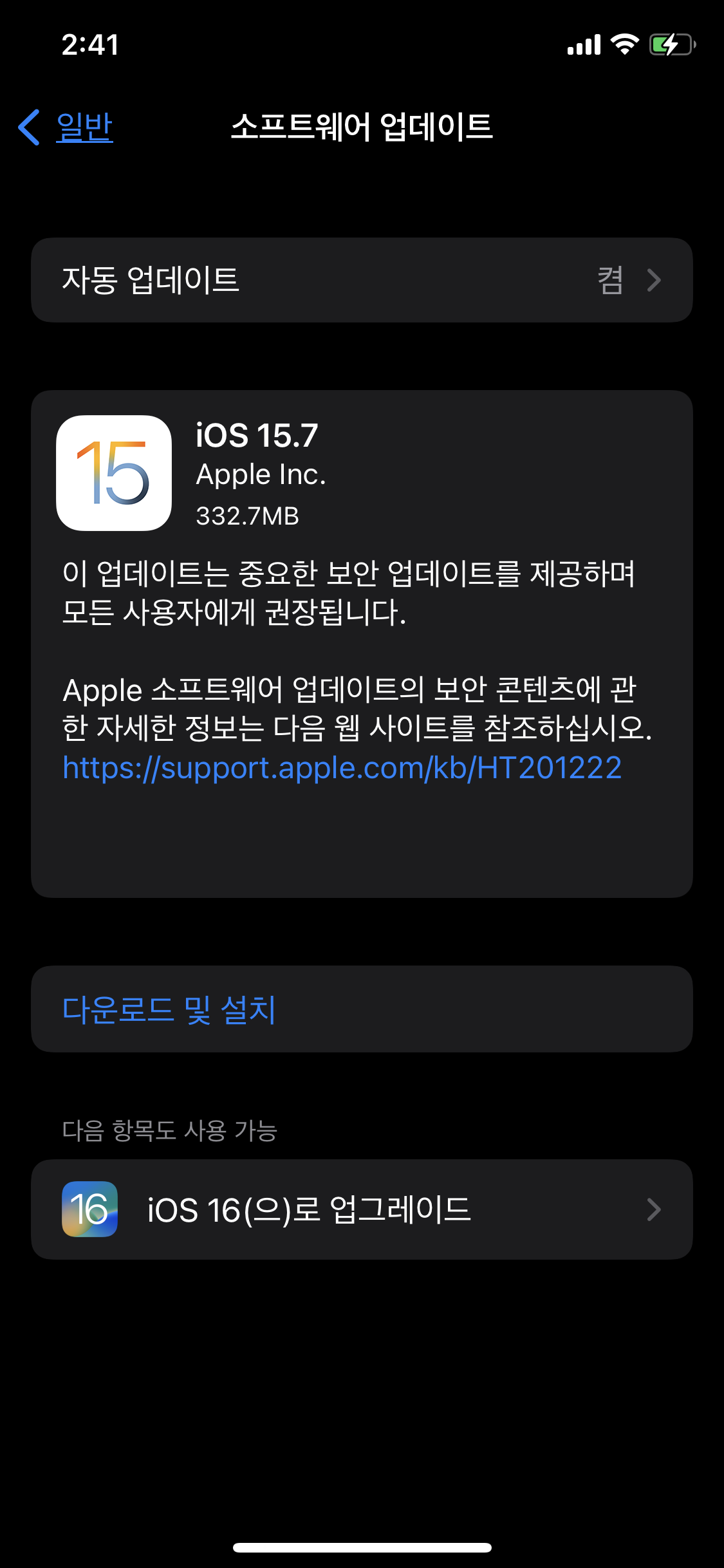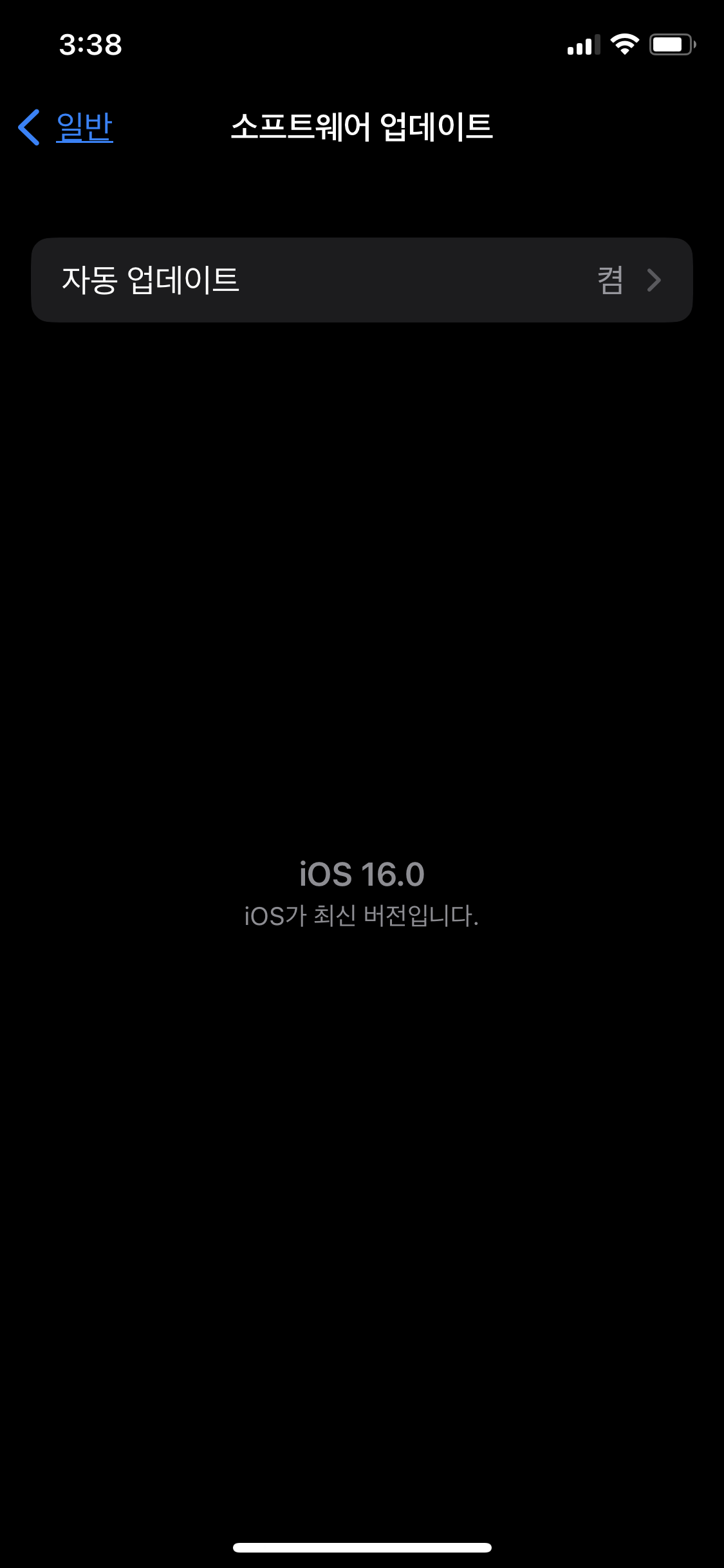 이제 iOS가 16이라 최신 버전이라고 나옵니다. 정상적으로 설치가 된 것이죠.