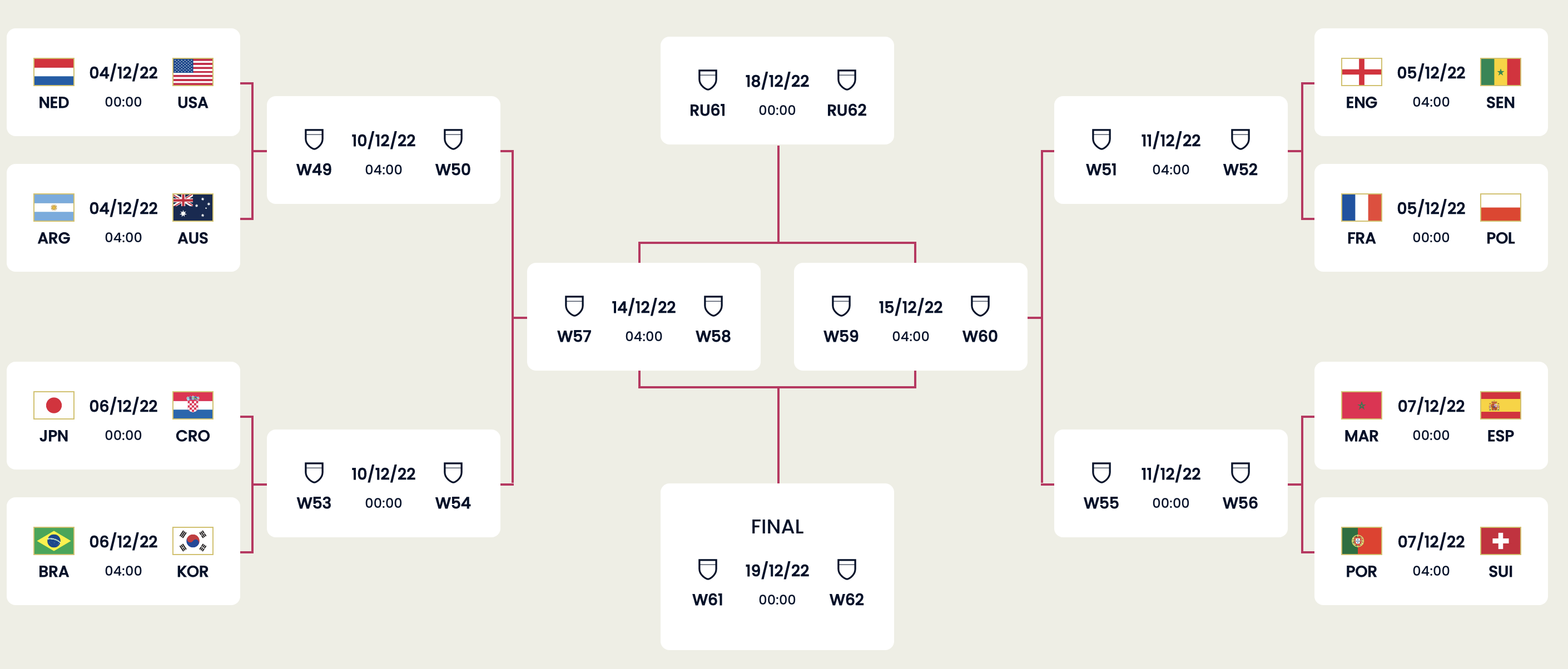 이제 2022 카타르 월드컵 16강전 일정을 살펴봅니다.