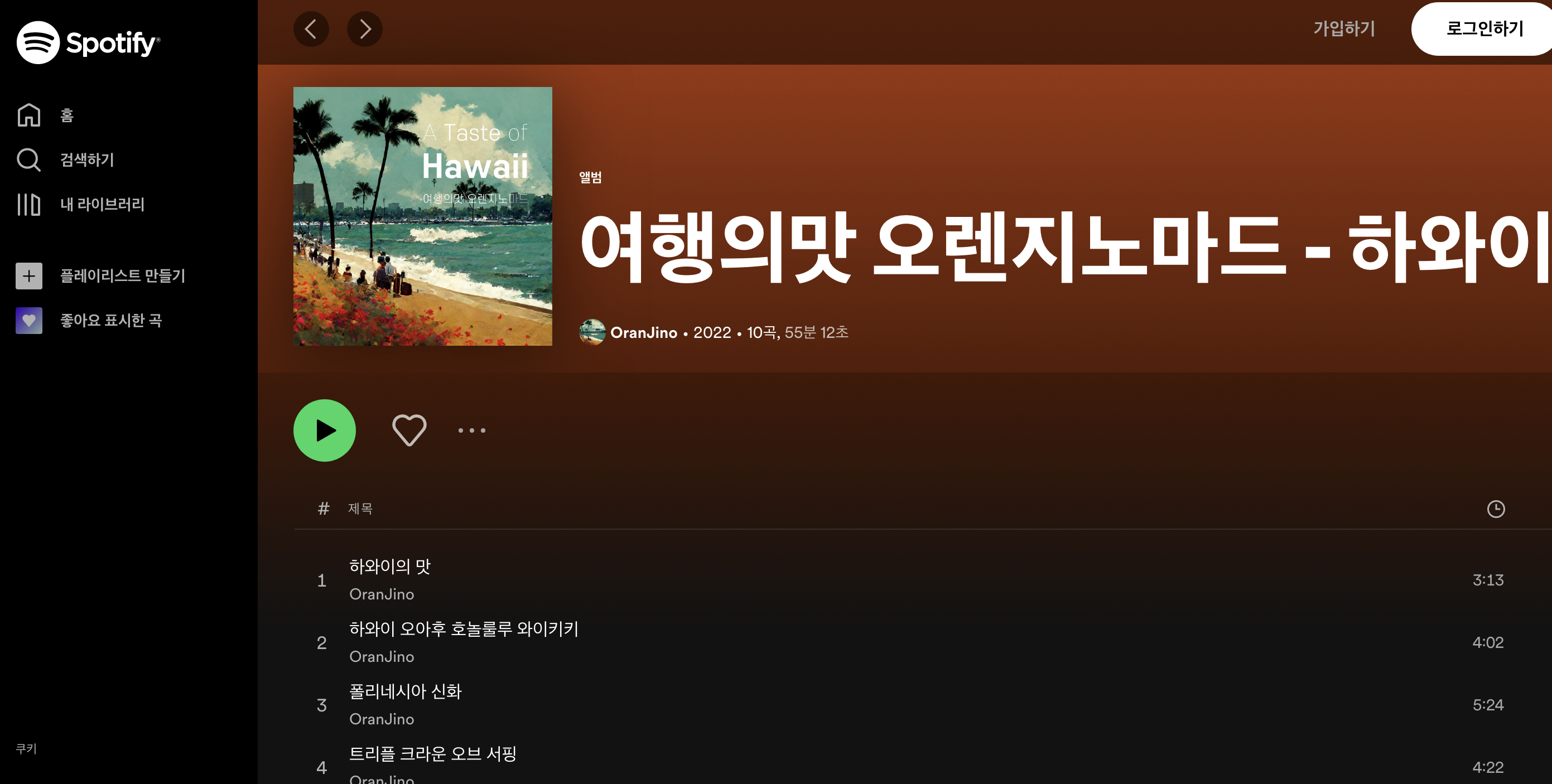 최근 저는 여행 유튜브 영상에 쓰기 좋은 배경음악들을 만들어 앨범을 냈습니다. [여행의맛 오렌지노마드 - 하와이] 인데요, 타이틀곡 '하와이의 맛'을 제외한 9곡은 모두 배경음악입니다.