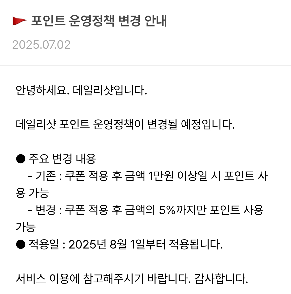 포인트 사용 가능 비율이 100%에서 5%로 -95%가 된 엄청난 개악이라는 것입니다.