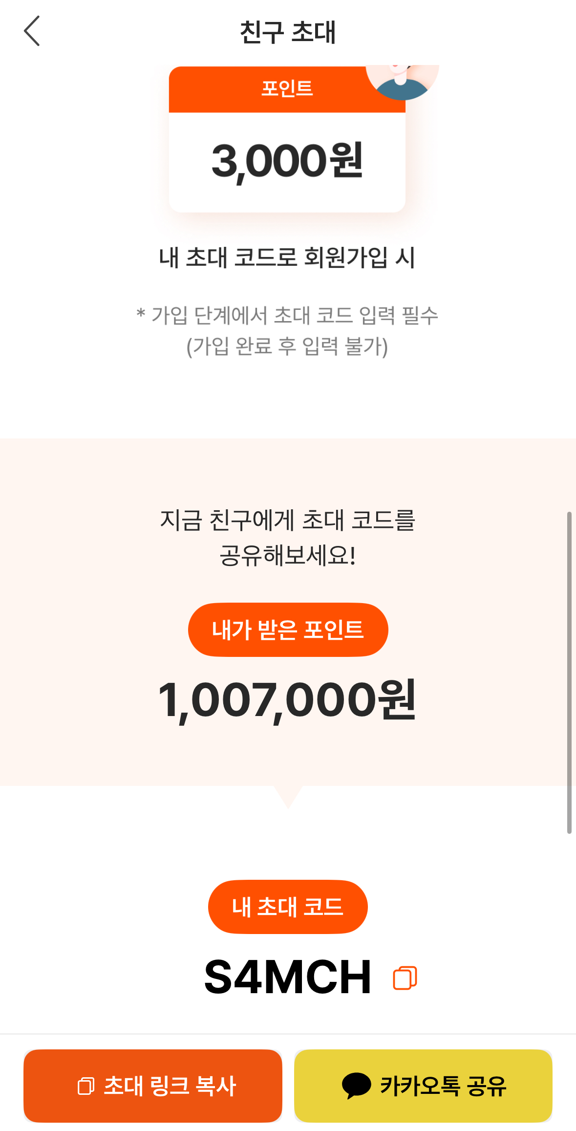 아시는 분도 계시겠지만, 처음엔 초대코드 리워드가 5천 포인트였습니다.