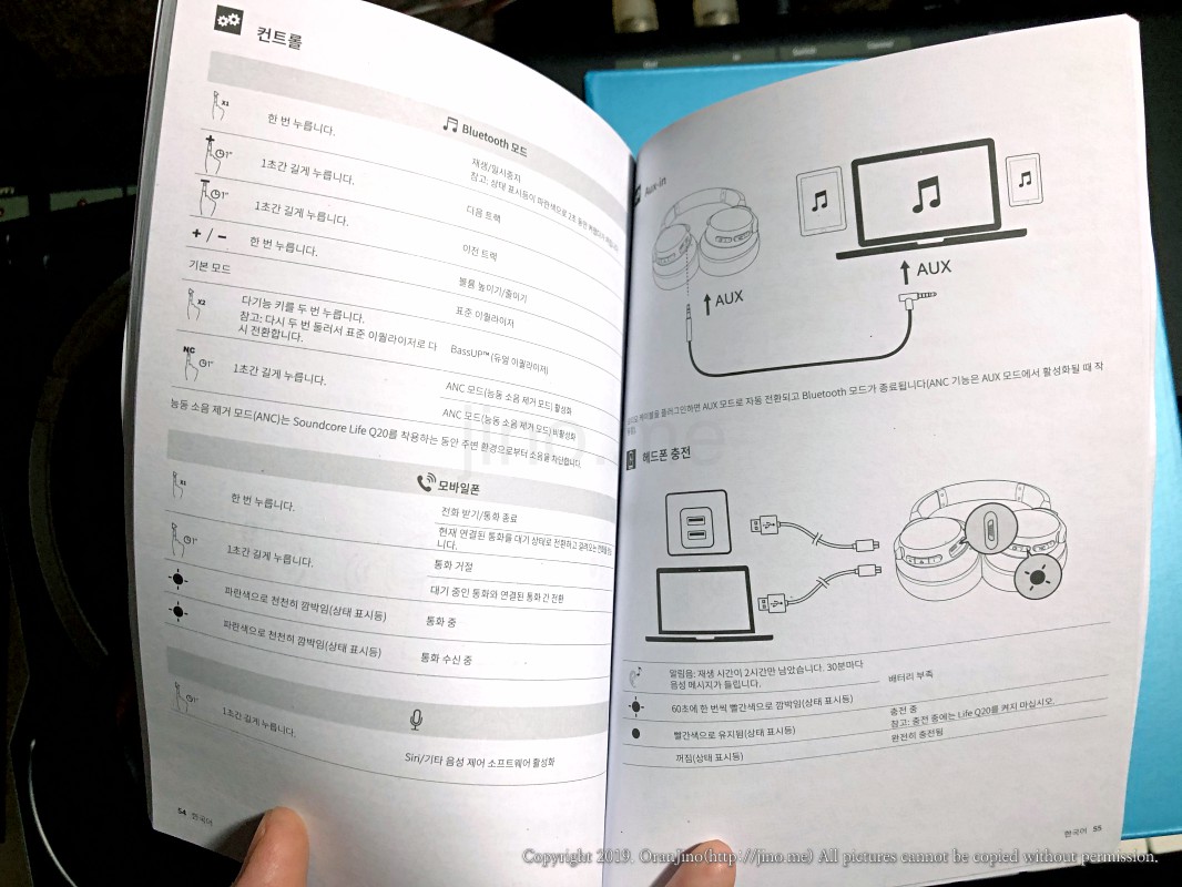저에겐 첫 노이즈캔슬링 헤드폰이라 사실 다른 것과 비교하긴 무리가 있지만 이틀간 사용하면서 큰 부족함은 느끼지 못했습니다. 유선 AUX 케이블을 끼우면 전원 없이 작동하는 헤드폰이 되는데 아이패드에 연결하여 개러지밴드 연주할 때 쓰기 아주 좋았습니다. 연주나 리듬게임같이 완벽한 실시간이 지원되려면 사실상 무선 헤드폰으론 아직도 무리가 있거든요. 그리고 방전이 되어도 케이블로 들을 수 있다는 것이니까요.