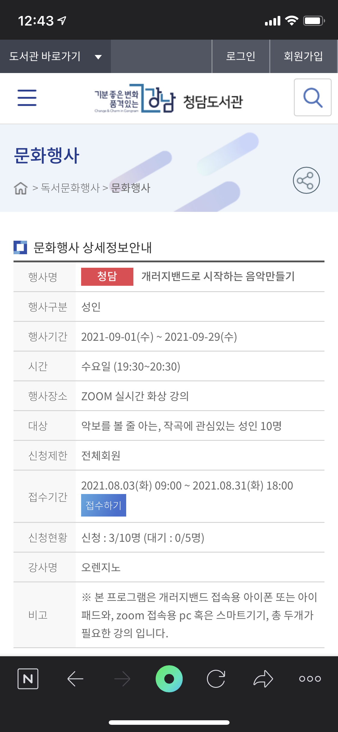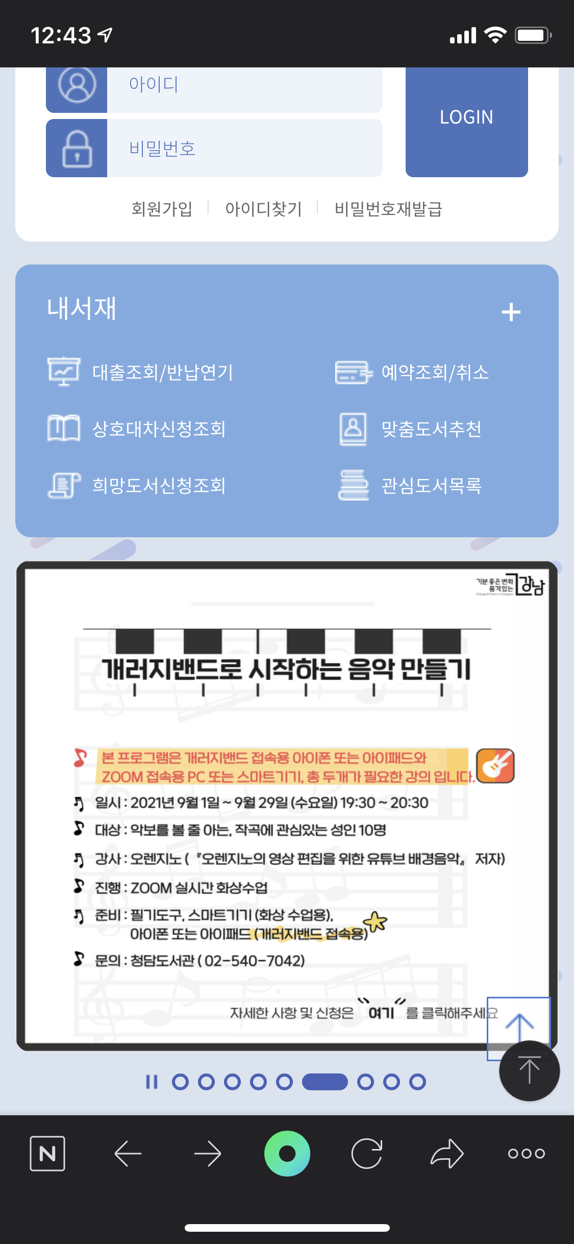 청담도서관 홈페이지에 접속하면 이렇게 제 강의가 보였는데요,