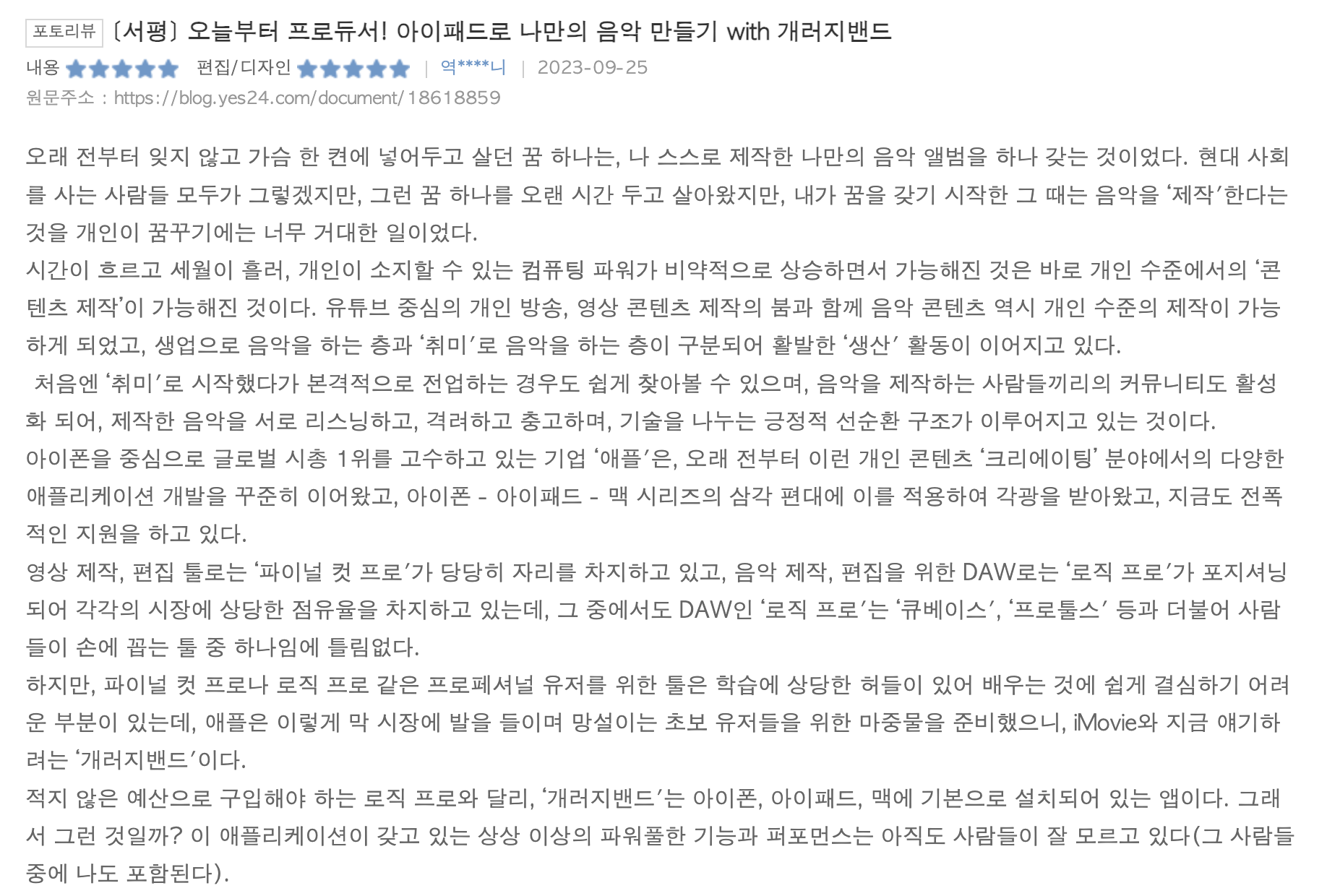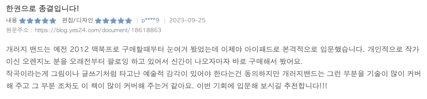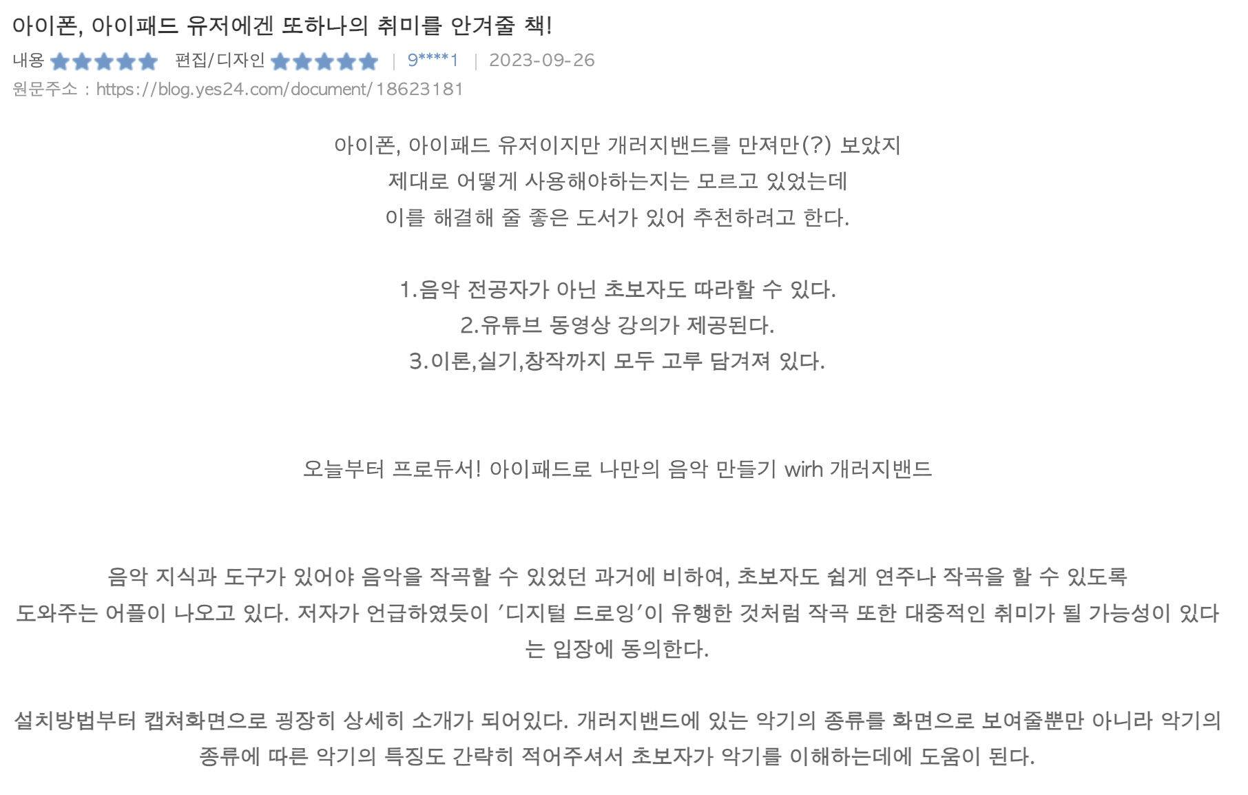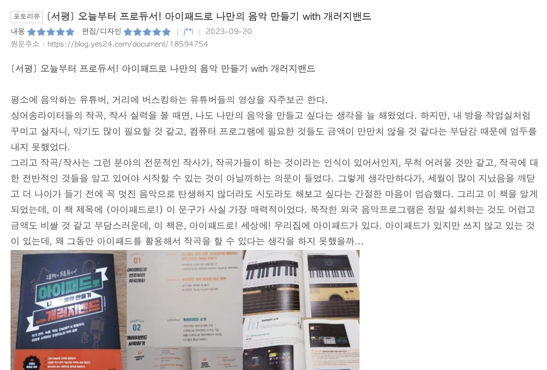 이렇게 먼저 작성된 5개의 서평 후기를 보셨습니다! 아이패드로 음악을 하고 싶거나 AI 인공지능 작곡에 관심 많은 분들께 많이 알려주세요~