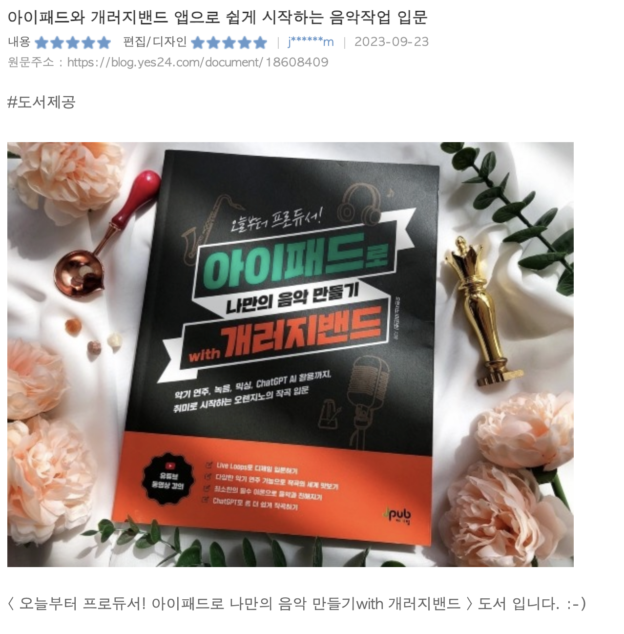 | 신간: 오늘부터 프로듀서 아이패드로 나만의 음악 만들기 with 개러지밴드 (0) | 2023.09.12 |
