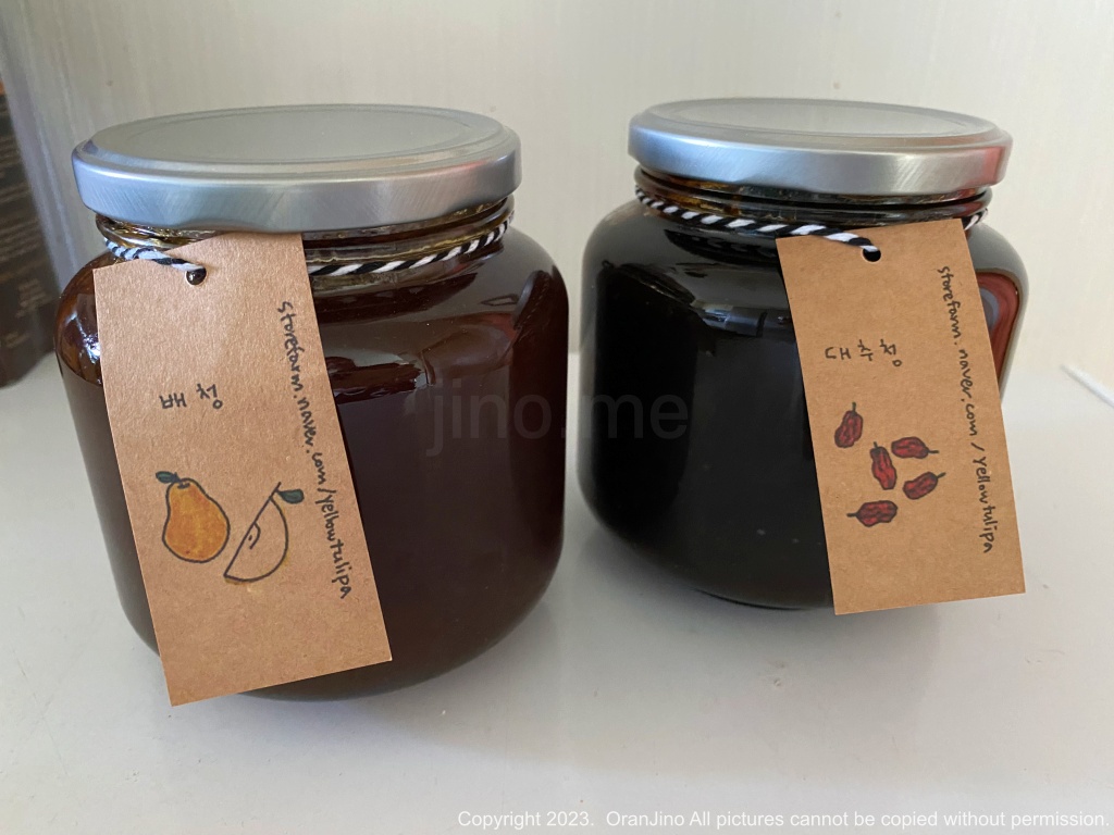 겨울이 되면 감기에 걸리기 쉽고, 따뜻한 차를 자주 마시면 건강에 도움이 되겠죠. 마침 늘 차로 타 마시던 배청, 대추청, 생강청이 떨어져서 재주문을 했습니다. 오랜 기간 수제청으로 판매 상위 랭크에 있는 노랑튤립 수제청에서 배청과 대추청을 구매했습니다.