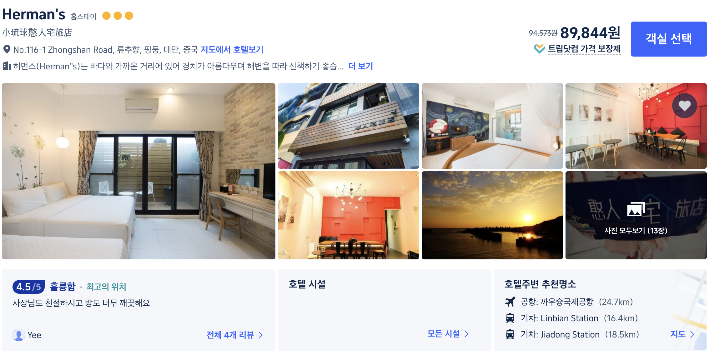 | 타이중역 숙소 Enterpriser 호텔 숙박 후기 (0) | 2024.11.20 |