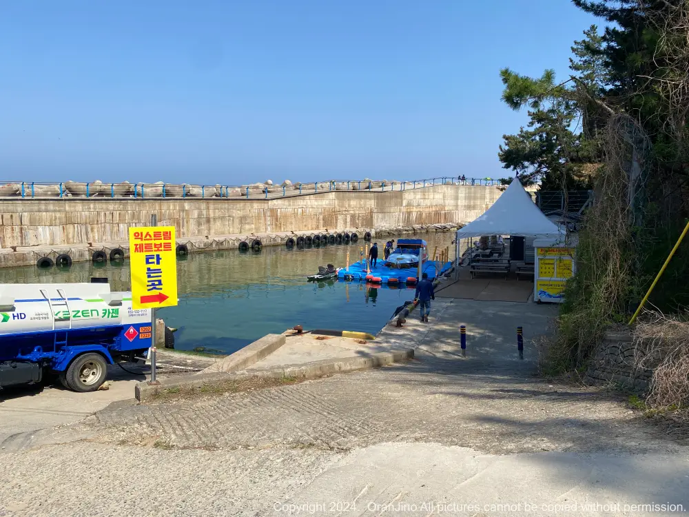 이렇게 한섬방파제까지 오면 익스트림 제트보트 타는곳이라고 안내가 되어있는데 이 곳이 바로 한섬마리나 선착장입니다.