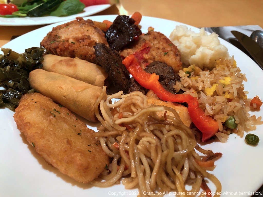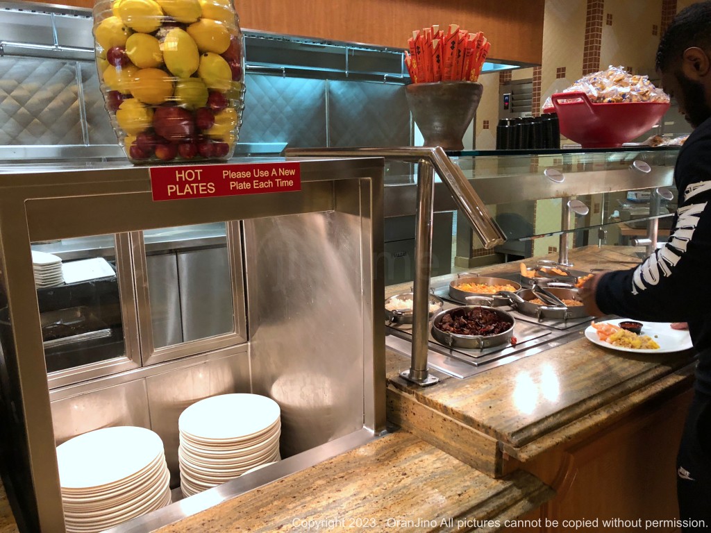 일단 어떤 음식들이 있는지 돌아봅니다. 핫플레이트엔 따뜻한 음식을 담아야겠죠.