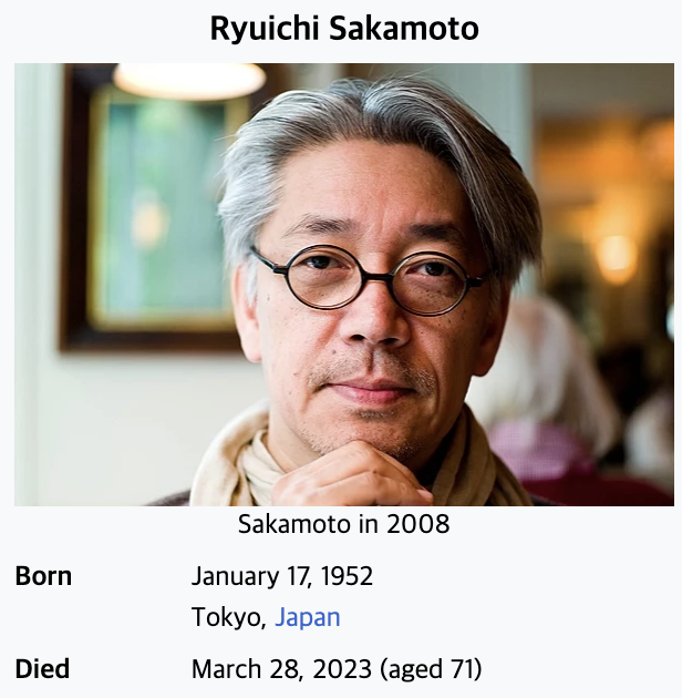 류이치 사카모토는 일본의 전설적인 음악가이자 작곡가로, 그의 끊임없는 혁신과 창조력 덕분에 세계적인 명성을 얻었습니다. 그의 음악 작품은 고유한 스타일과 아름다운 멜로디로 유명하며, 영화 음악과 전자음악, 뉴웨이브 등 다양한 장르에서 성공을 거뒀습니다. 2023년 3월 28일, 도쿄 병원에서 직장암으로 별세하면서, 많은 음악인들의 음악인으로 존경 받던 그의 소식에 저 뿐만 아니라 많은 분들이 안타까워 하고 있습니다.