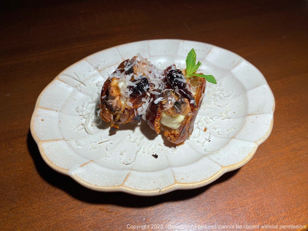 디저트 중 하나인 페타치즈 견과류 대추야자구이는 아무리 배가 불러도 한 입 먹고 또 먹게 되는 디저트입니다.