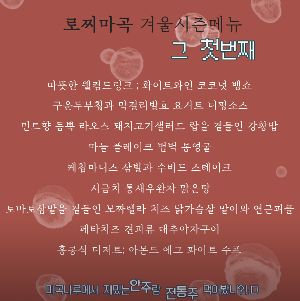 먼저 겨울시즌 메뉴부터 보여드릴게요