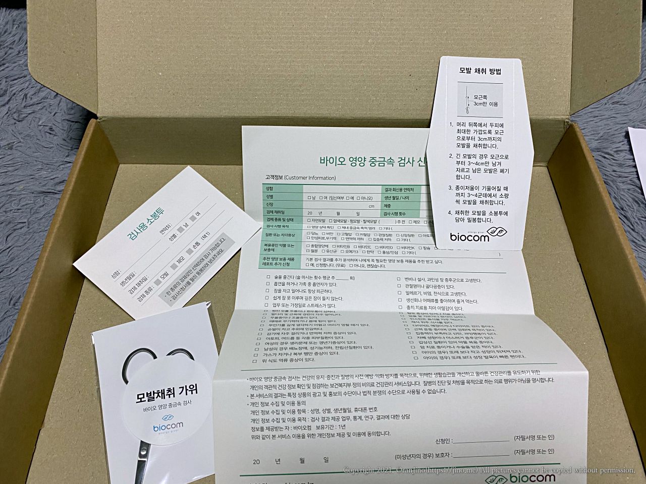하지만 내 몸에 어떤 영양소가 충분하고 결핍되는지 알기는 쉽지 않기에 의학 전문 기관의 힘을 빌릴 수밖에 없죠. 제가 이용하는 방법은 모발검사인데, 예전에 제 모발중금속검사도 만족스럽게 했던 바이오컴 biocom에서 여자친구의 바이오 영양 중금속 검사를 진행해보기로 했습니다. 저만큼 소중하니까요!