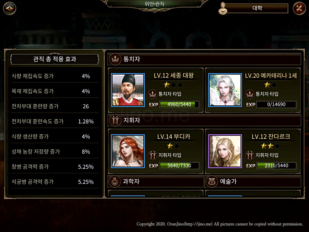 자원 약탈용 부캐는 영주버프, 유물, 위인 등을 활용하여 자원 생산과 채집에 대한 버프를 최대화 시키는 것이 좋겠죠.