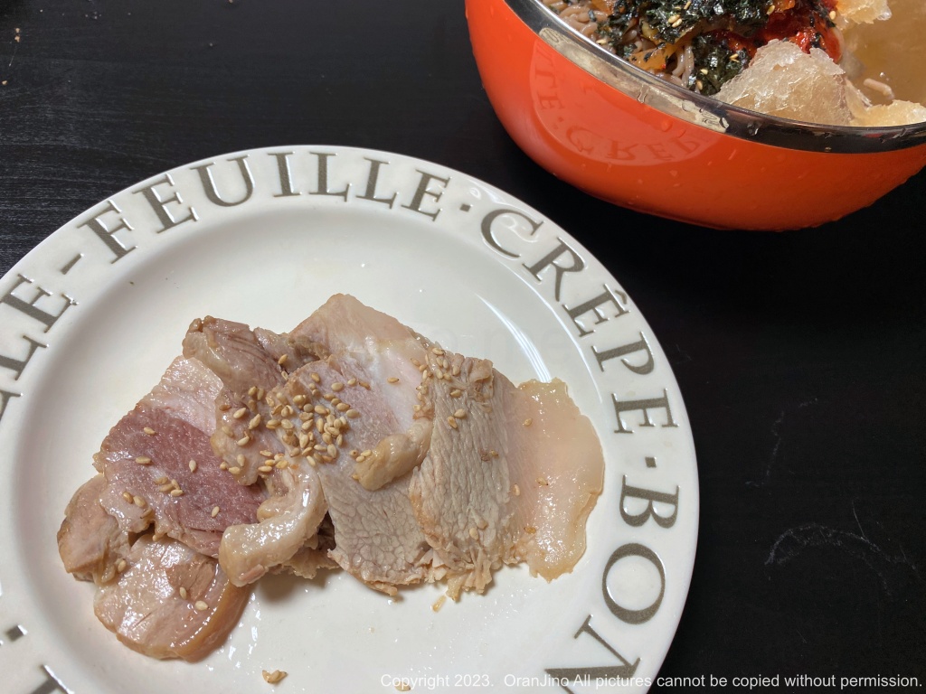 돼지고기 삼겹살의 야들야들한 수육에 막국수 면을 싸 먹으면 을매나 맛있게요!