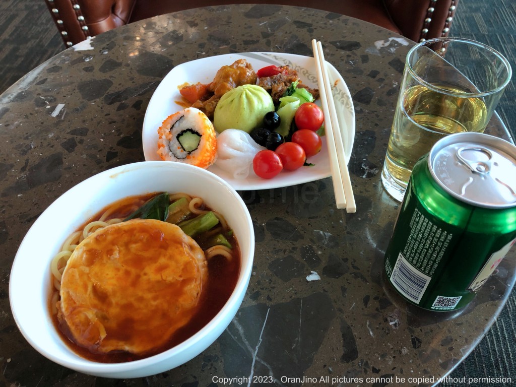 바오즈, 하가우 같은 만두류와 우육면도 먹은 것 같네요. 공항 라운지 맥주는 필수죠.