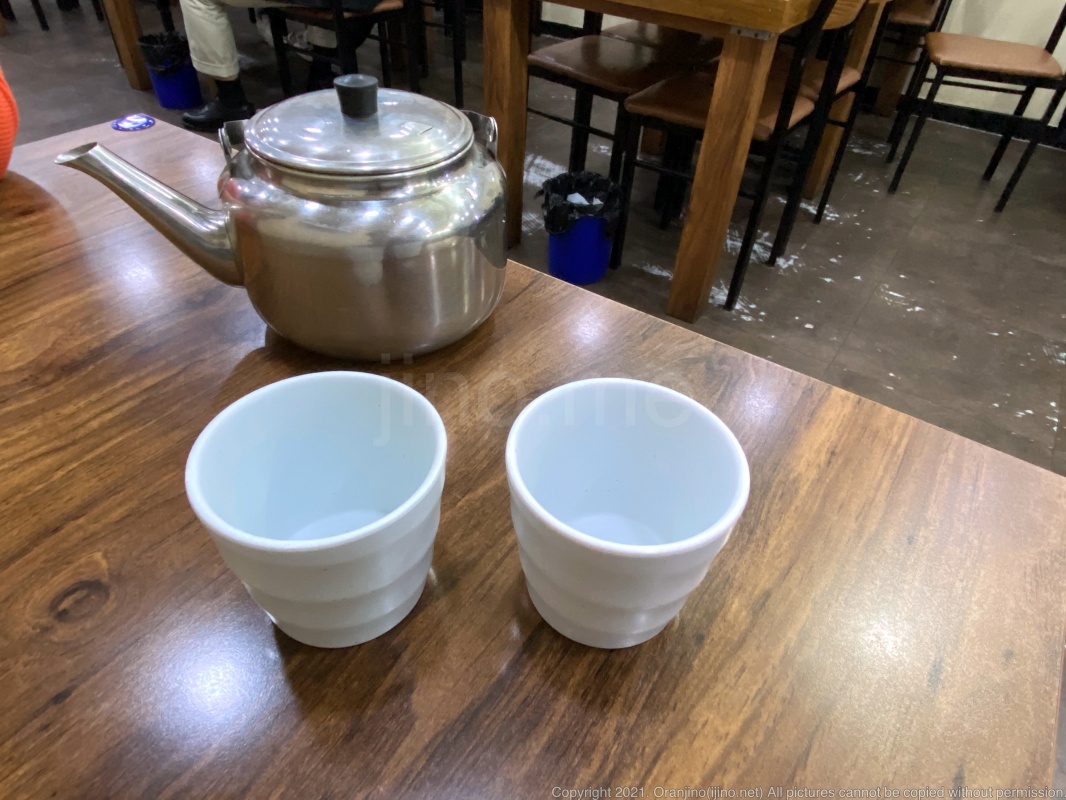 우선 데운 면수가 나옵니다.