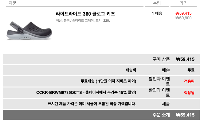 통화 후 크록스코리아 입장을 공유합니다. 요구는 모두 거부되었고 40% 쿠폰을 주겠다고 합니다.