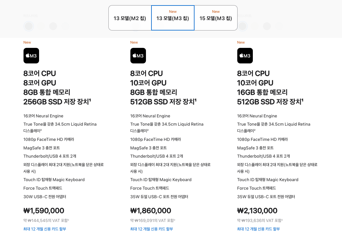 M3 칩을 장착한 새로운 MacBook Air 13 및 15는 오늘부터 28개 국가 및 지역에서 주문할 수 있으며, 3월 8일부터 고객에게 도착하기 시작합니다. 가격은 MacBook Air 13 모델이 1,590,000원부터, MacBook Air 15 모델이 1,890,000원부터 시작합니다.