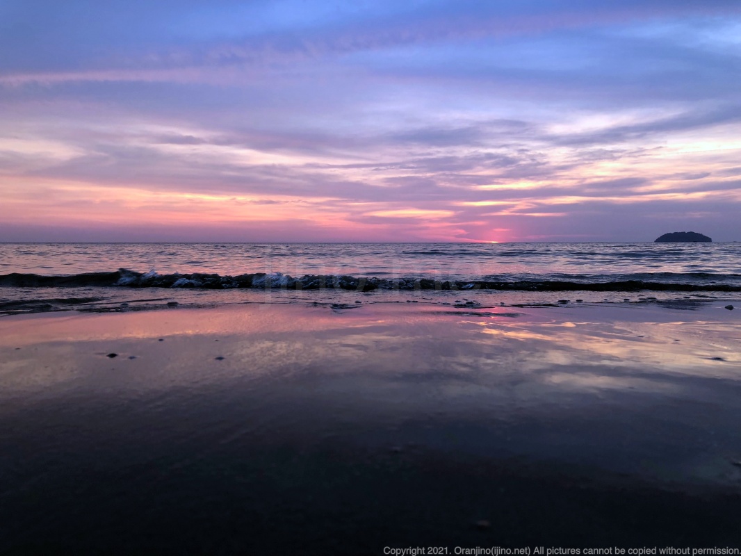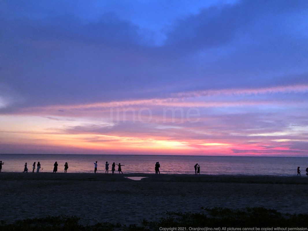 해외여행 못 가서 여행앓이 하는 분들을 위해 세계 3대 노을 맛집이라는 코타키나발루 탄중아루 해변의 노을 영상을 올립니다. 노을 영상과 찰떡인 배경음악인 '코타키나발루의 맛 노을 버전 - 오렌지노'를 브금 삼아 코로나19 시국 전의 바다 노을을 감상해보세요.