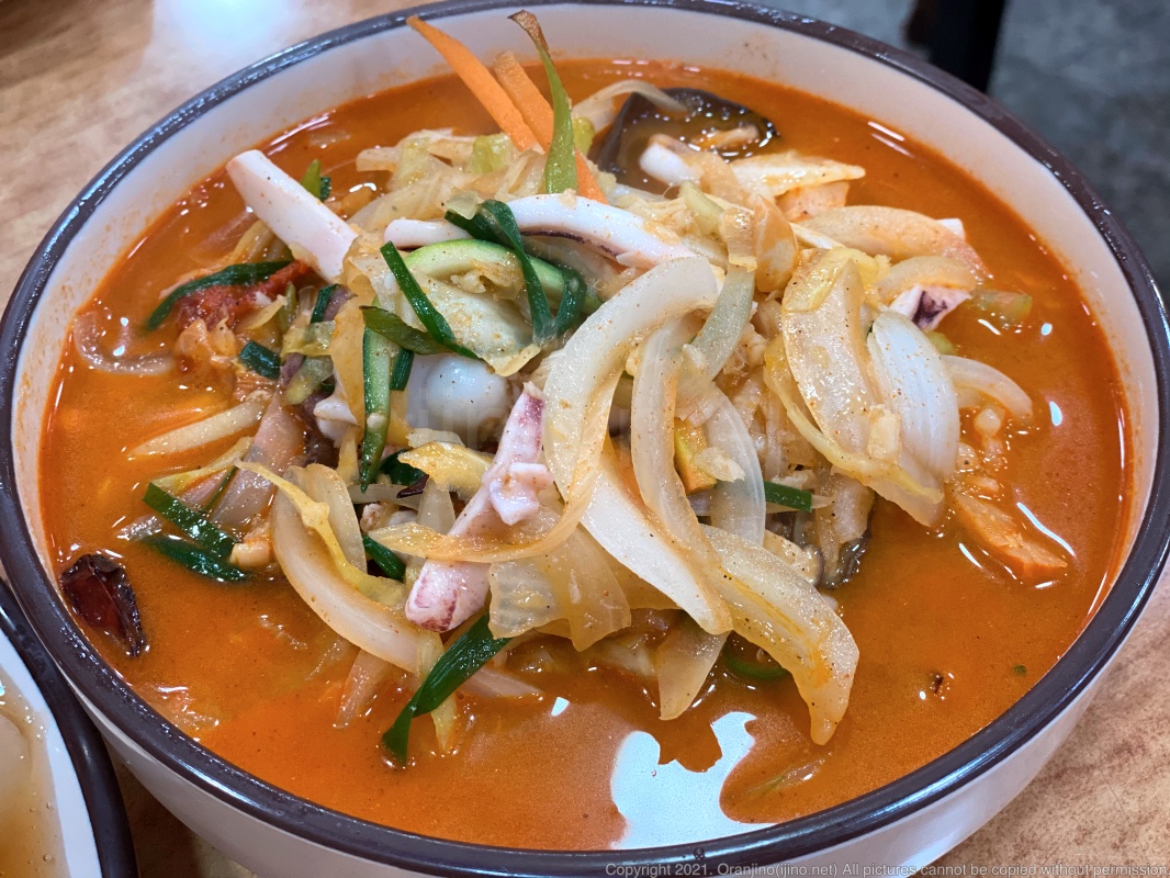 그리 맵다는 느낌은 안 들었고, 확실하진 않지만 사골육수가 느껴지는 듯 했습니다. 괜찮은 맛이었지만 홍합이 살짝 비렸네요.
