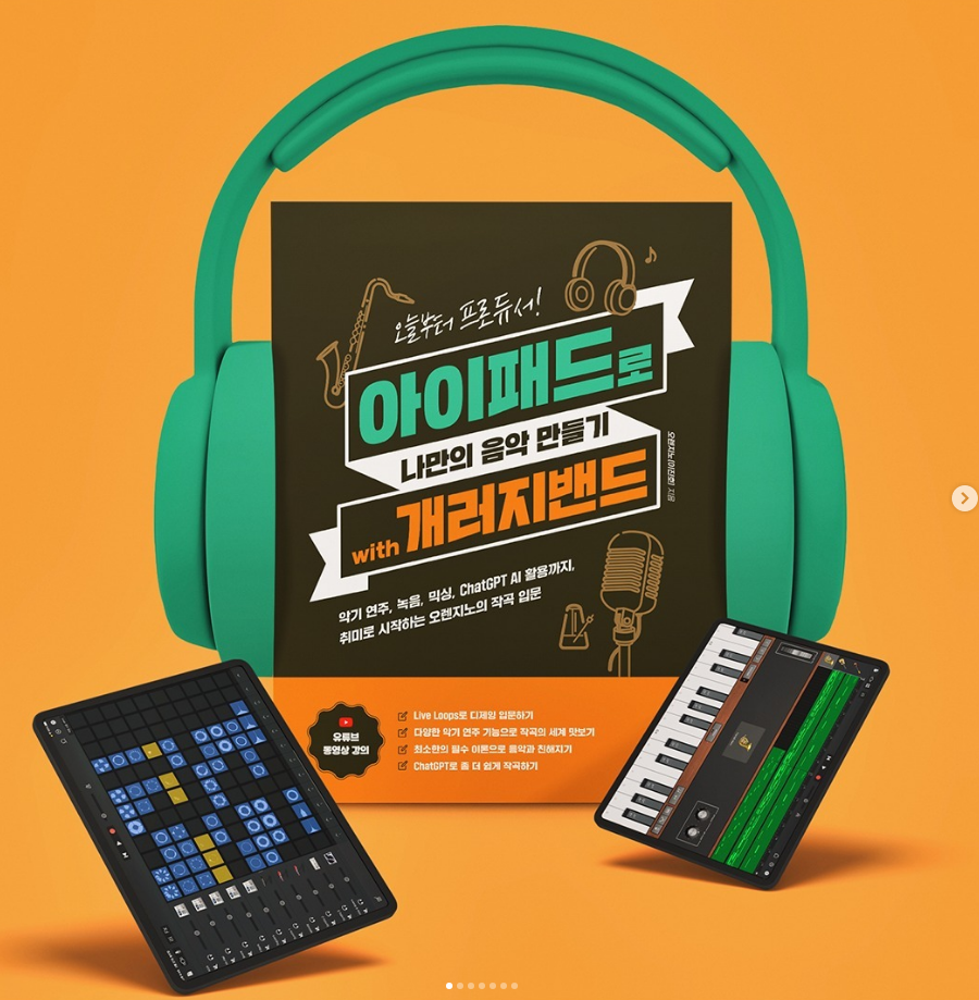 오렌지노의 5번째 신간, 오늘부터 프로듀서! 아이패드로 나만의 음악 만들기 with 개러지밴드 악기 연주, 녹음, 믹싱, ChatGPT AI 활용까지, 취미로 시작하는 오렌지노의 작곡 입문 서평단 모집 이벤트를 공유합니다. 오늘까지 응모이니 서두르셔야 합니다!
