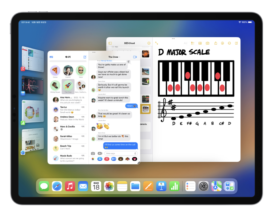 도크 설정하기: 도크는 가장 자주 사용하는 앱을 편리하게 저장할 수 있는 공간으로, iPad의 어느 곳에서나 쉽게 액세스할 수 있습니다. 도크를 사용자 지정하려면 홈 화면에서 앱 아이콘이 흔들리기 시작할 때까지 길게 탭한 다음 앱을 도크로 드래그하면 됩니다. 도크에 최대 11개의 앱을 넣을 수 있으므로 가장 많이 사용하는 앱을 선택하면 됩니다.
