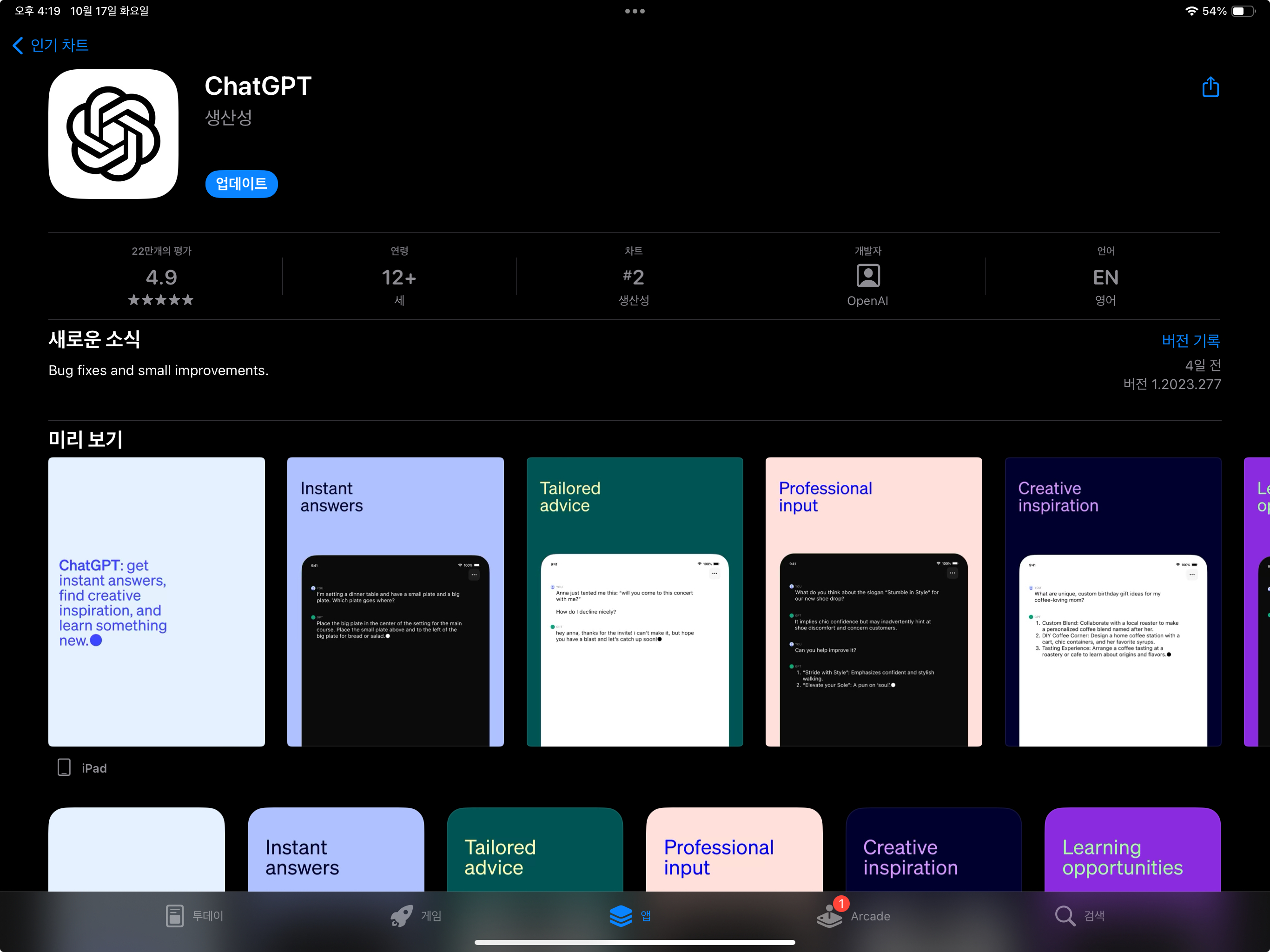 ChatGPT 앱은 아이패드 사용자들에게 새로운 경험을 제공합니다. 다양한 활용 범위와 함께 편리한 인터페이스로 여러분의 아이패드 사용 경험을 한층 업그레이드해 줄 것입니다. 기존에 컴퓨터나 스마트폰에서만 체험할 수 있던 ChatGPT의 세계를 아이패드에서도 만끽해보세요!