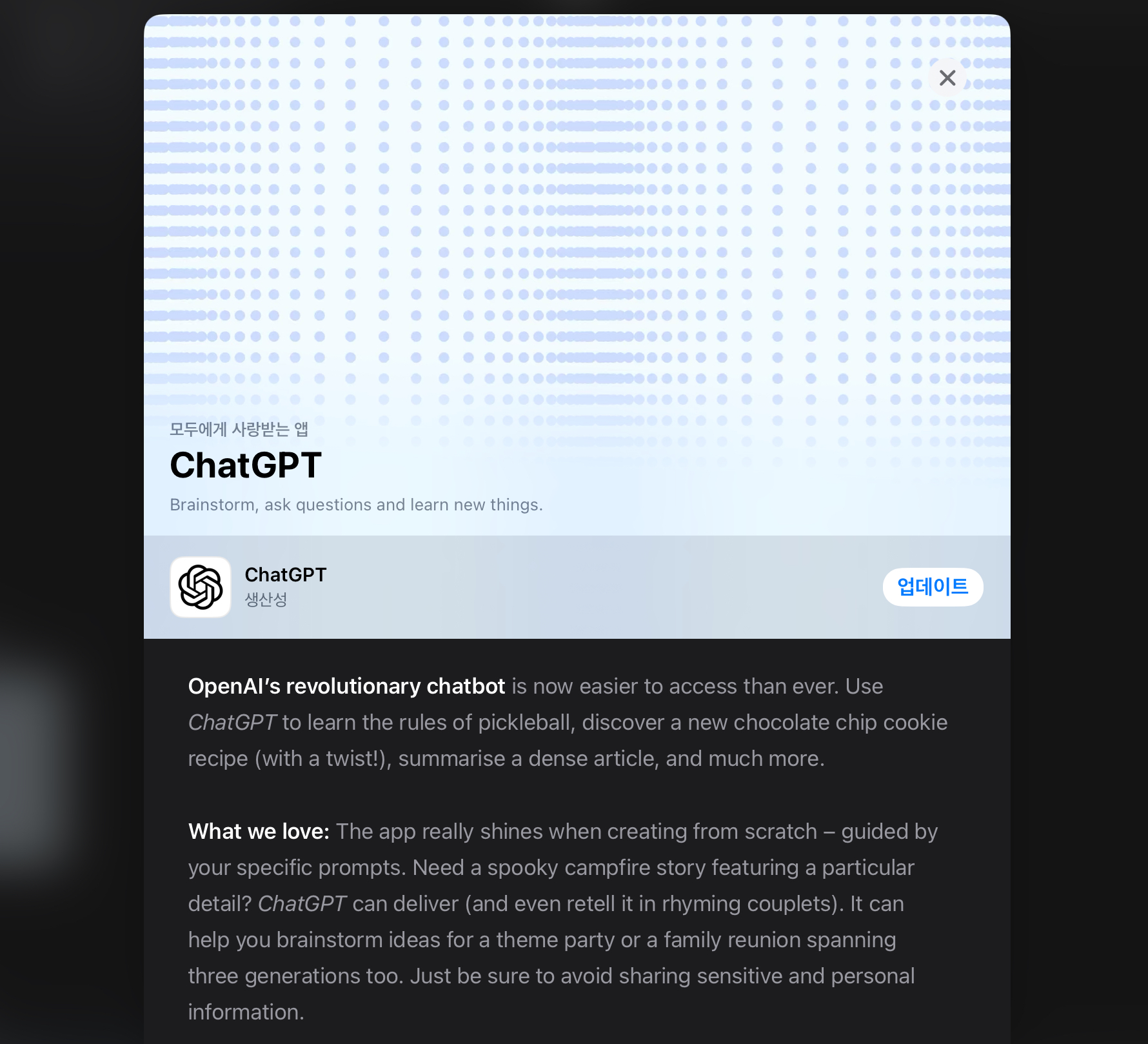 아이패드에서의 새로운 대화의 시작: ChatGPT 앱 리뷰