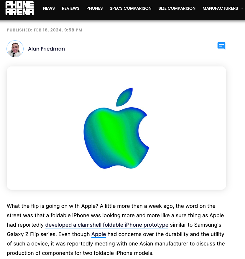 미국의 정보기술(IT) 매체 폰아레나는 중국 IT 정보유출자 '픽스드 포커스 디지털'을 인용해, 애플이 자체 실험을 통해 폴더블폰 화면의 내구성이 자사의 엄격한 기준을 충족하지 못함을 발견하고, 이에 따라 폴더블 아이폰 개발을 잠정적으로 보류하기로 결정했다고 보도했습니다.