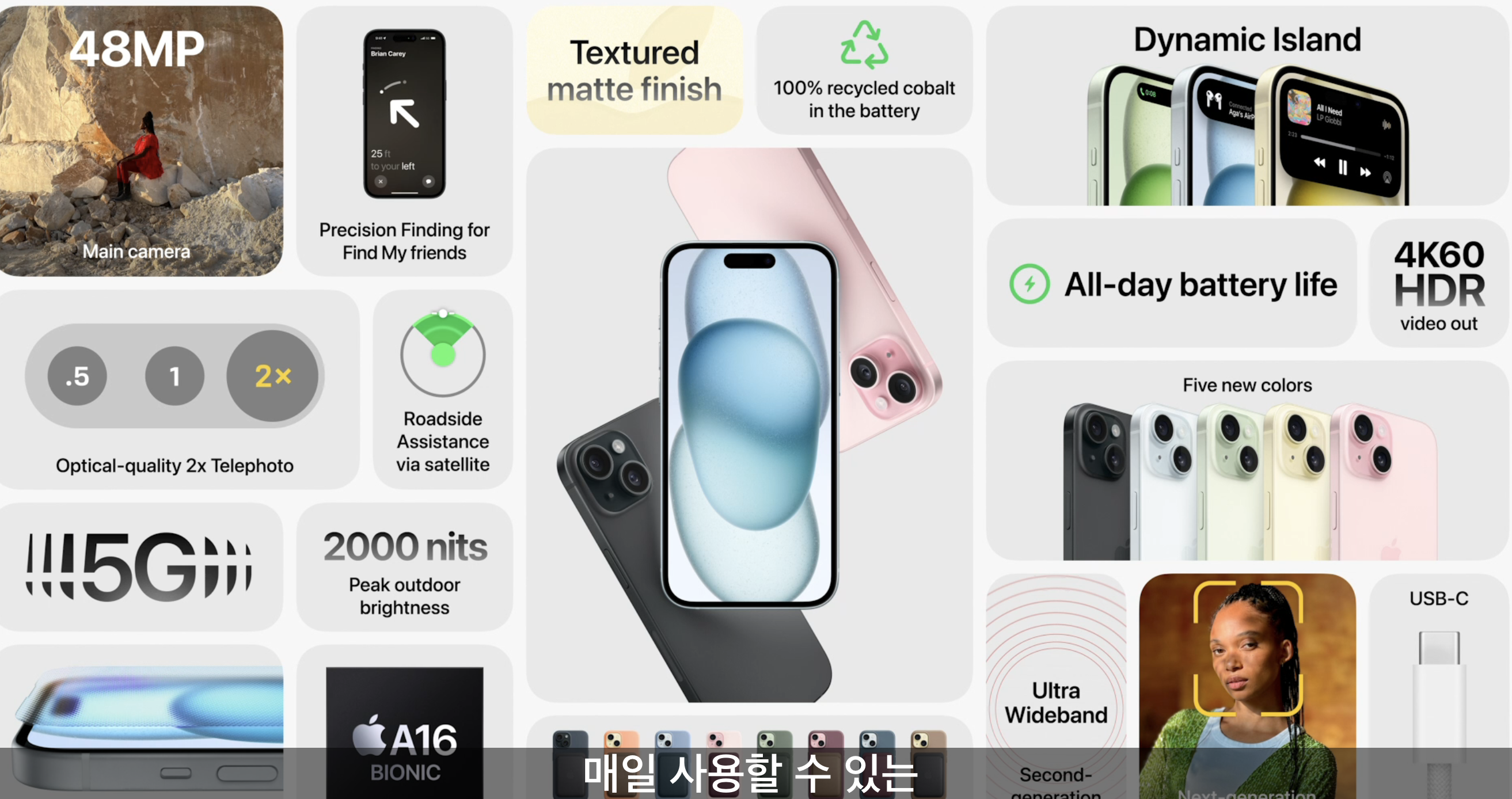 아이폰 15는 128GB 기준 799달러(약 106만원)부터, 아이폰 15 플러스는 899달러부터시작됩니다.