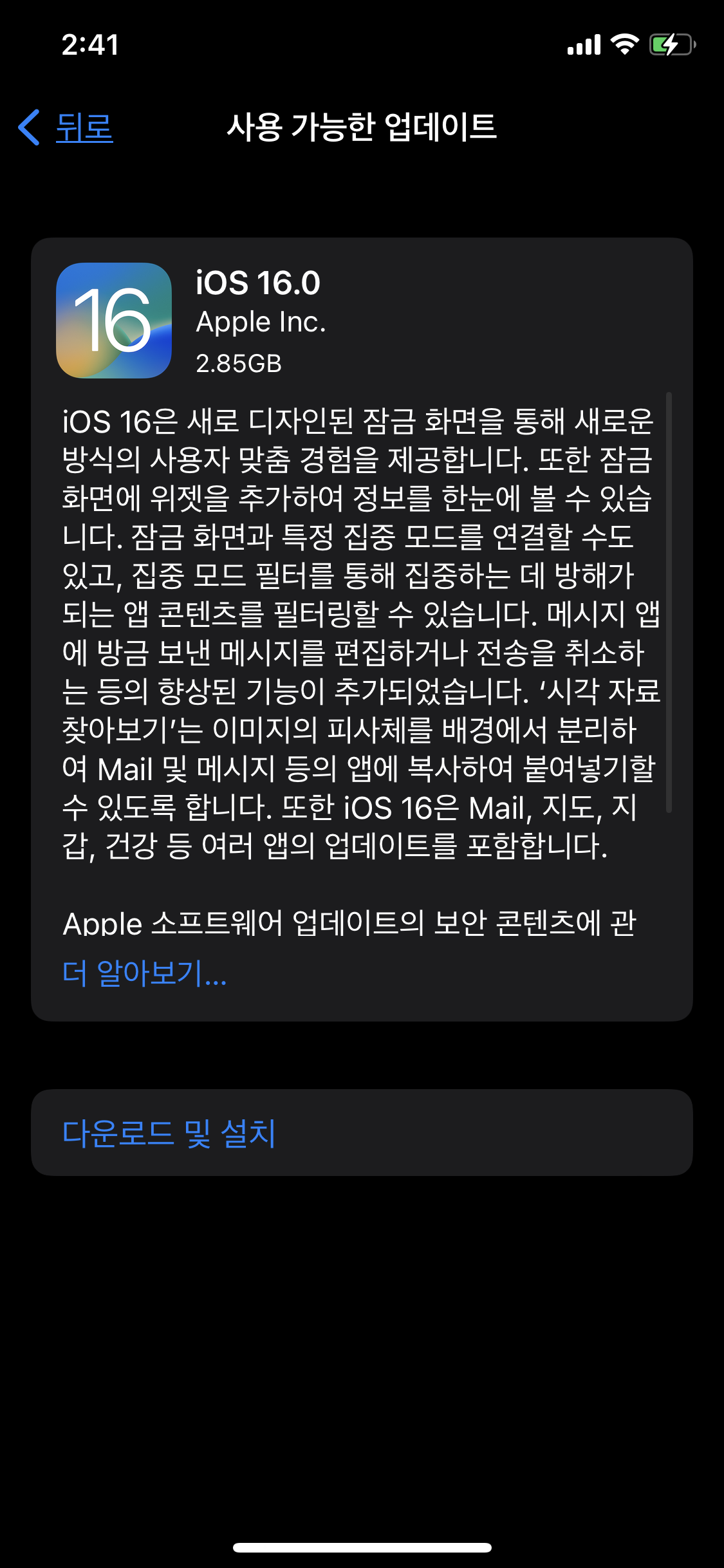 이제 정식으로 애플 iOS 16 업데이트가 가능해졌습니다. 개성이 바로 역량이라며 강조한 iOS 16은 아이폰의 능력을 한 단계 더 끌어올려주는 사용자화 기능, 더 깊어진 지능, 더 매끄러운 소통과 공유 방식을 자랑하네요. 저는 어제 오후 업데이트를 시도했습니다.