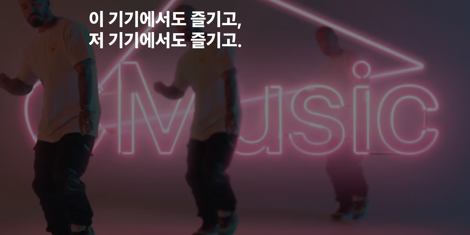 애플뮤직은 다양한 기기에서 이용할 수 있습니다. iPhone, iPad, Apple Watch, Apple TV 4K, Mac에서 애플뮤직 앱을 사용할 수 있으며, 또한 CarPlay를 통해 자동차에서도 음악을 들을 수 있습니다. 더불어 music.apple.com/kr 웹 사이트에서도 온라인으로 음악을 감상할 수 있습니다. 또한 Windows 및 안드로이드 기기, Google Nest, 스마트 TV 등에서도 애플뮤직을 이용할 수 있습니다.