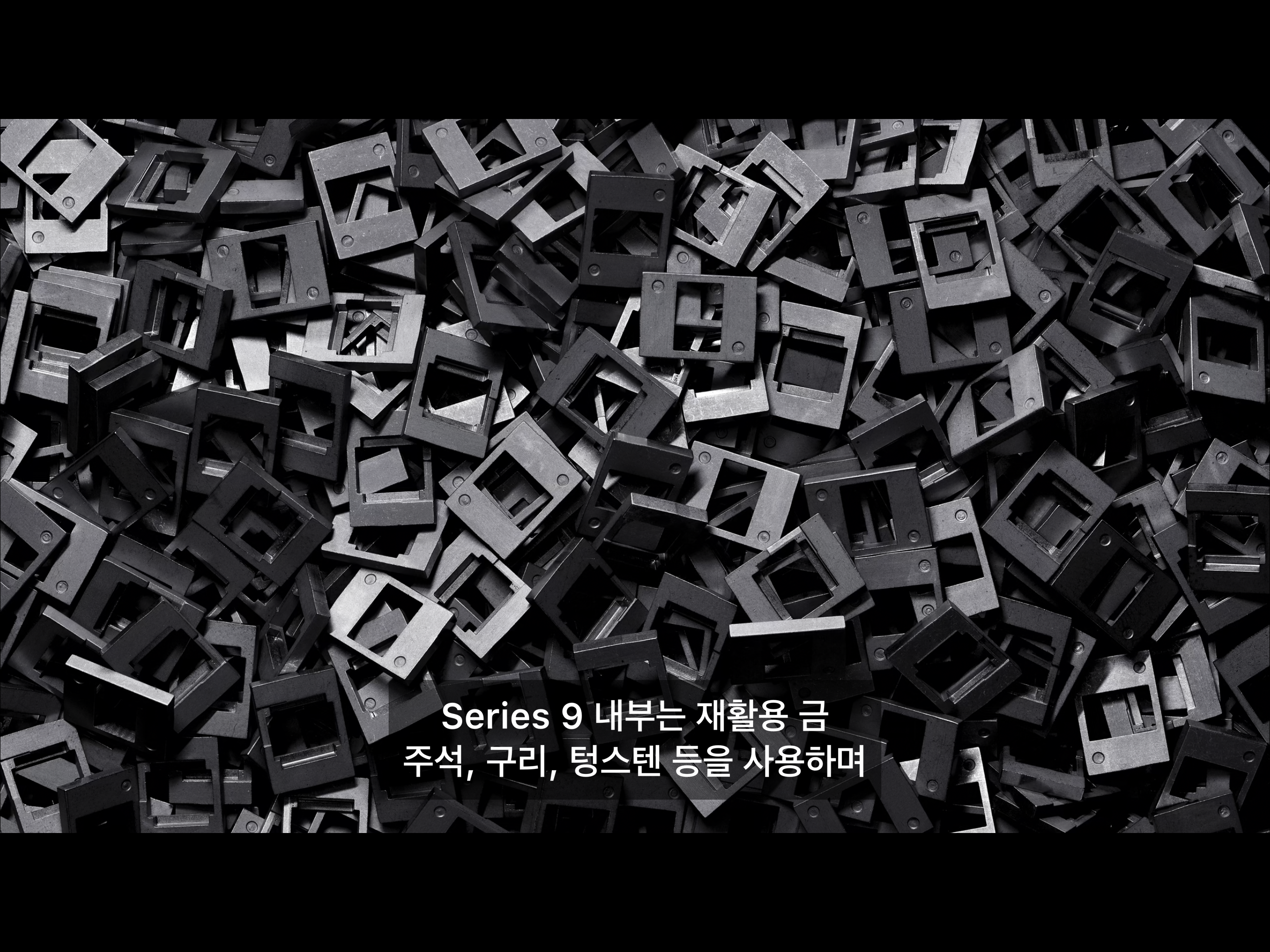 애플워치 9 시리즈 내부는 재활용 금, 주석, 구리, 텅스텐 등을 사용했다고 합니다.