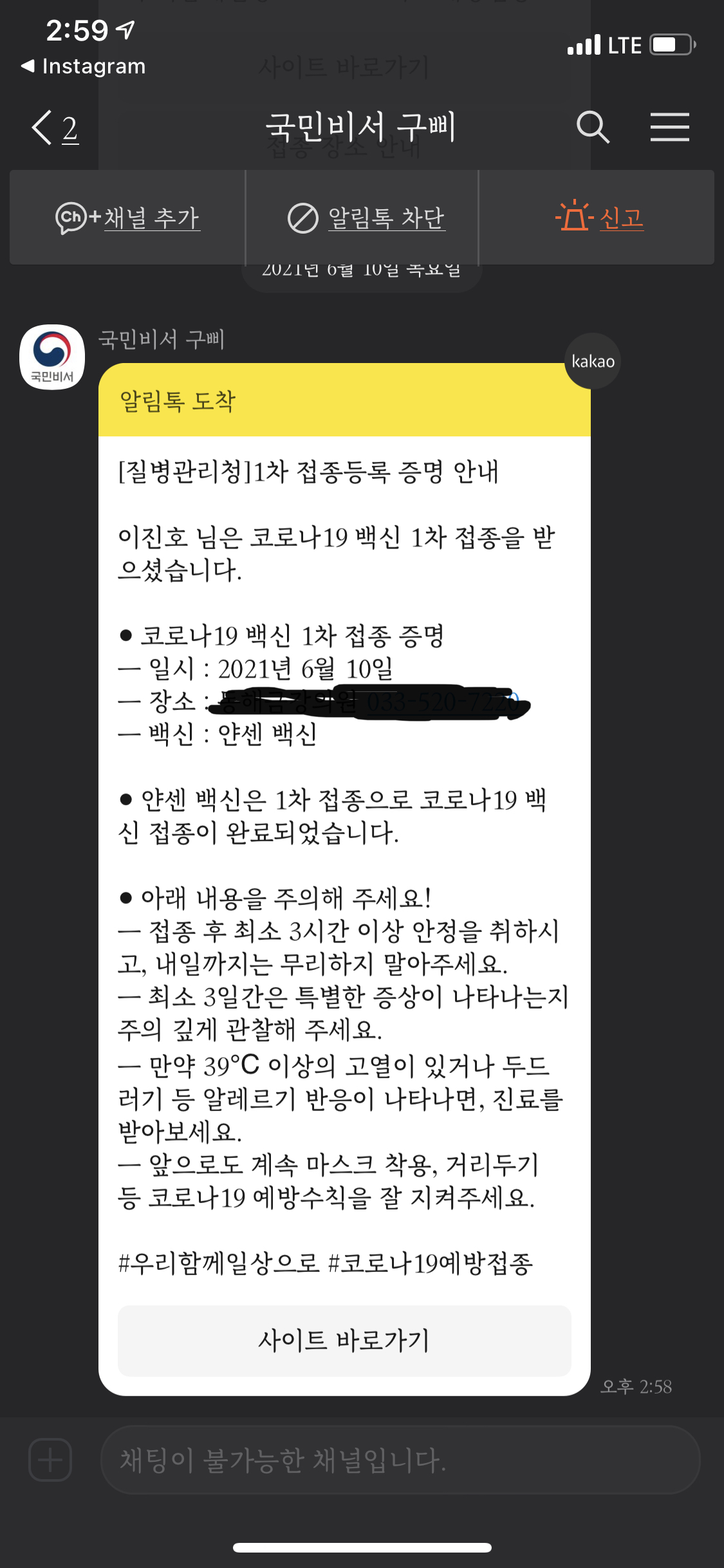 대기하던 중 국민비서 구삐가 접종 완료 메시지를 보냅니다.