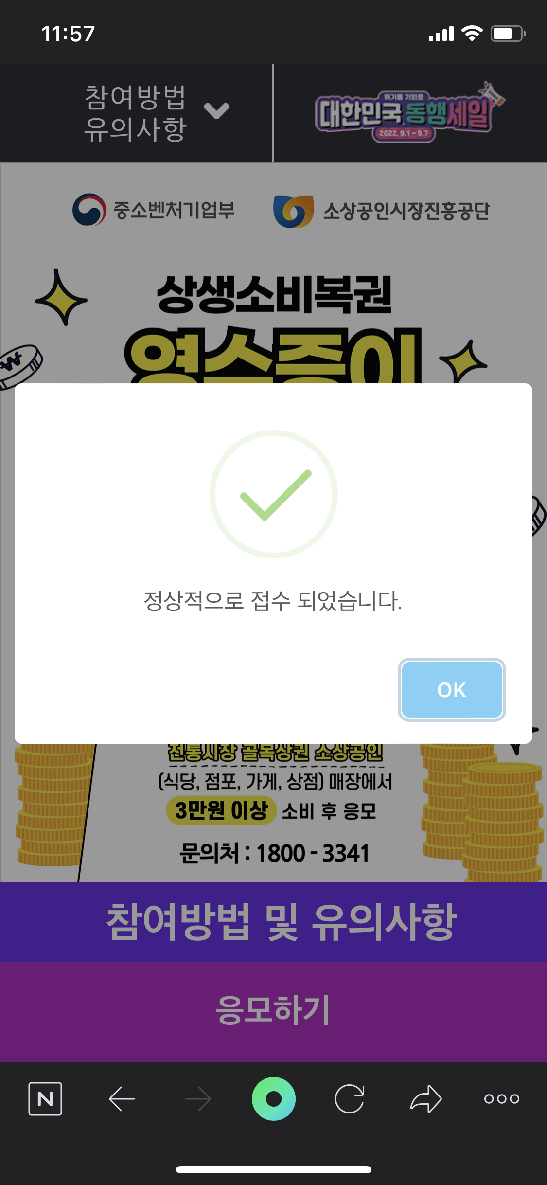 - 네엣. 상생소비복권 이벤트 응모 완료 카카오 알림톡을 확인하면 끝!