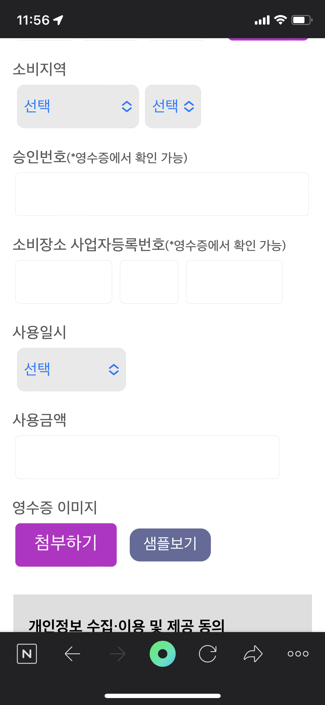 영수증의 승인번호와 영수증 발행처의 사업자등록번호까지 입력하고 영수증 사진까지 첨부해야 해서 다소 번거로운 작업이 필요하긴 합니다.