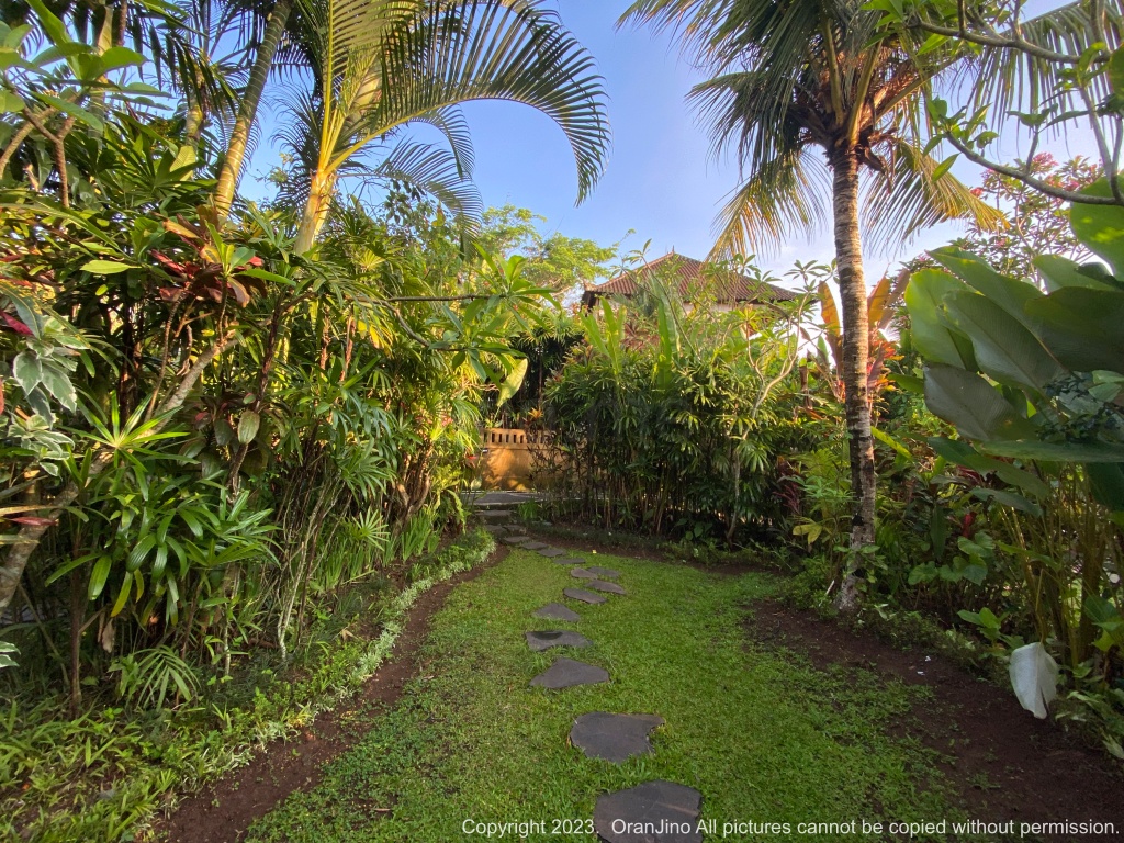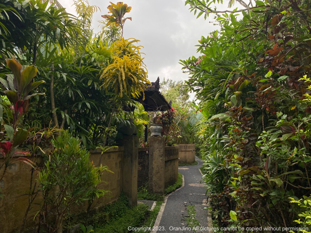 길리트라왕안에서 배를 타고 발리로 돌아와 미리 예약한 셔틀버스를 타고 우붓으로 왔는데, 발리 드림 리조트 우붓까지 차가 들어갈 수 없어 약 5분 정도는 걸어서 가야 했습니다. 캐리어를 끌기 좋은 길이 아니었습니다.