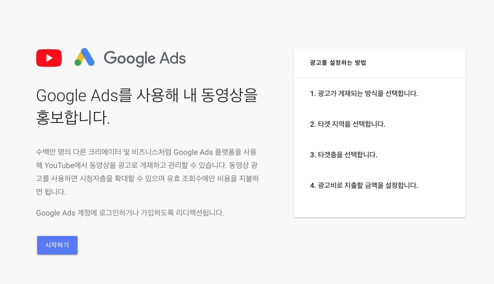 유튜브 크리에이터 스튜디오에서 특정 유튜브 영상의 '홍보하기' 메뉴를 이용하여 구글애즈와 연동하여 진행하게 됩니다.