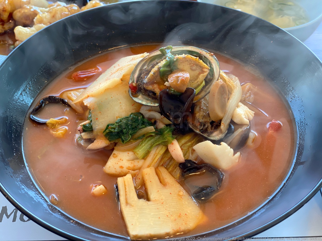18,000원의 전복 중새우 짬뽕이 꽤나 훌륭합니다. 전복이 통째로 2개가 들어있는데, 국물에도 슬라이스 전복이 있으니 2.5마리는 들어가있는듯하네요. 죽순, 목이버섯, 표고버섯, 오징어, 배추 등 싱싱한 재료들 때문이라도 이 가격은 충분히 값어치를 합니다.