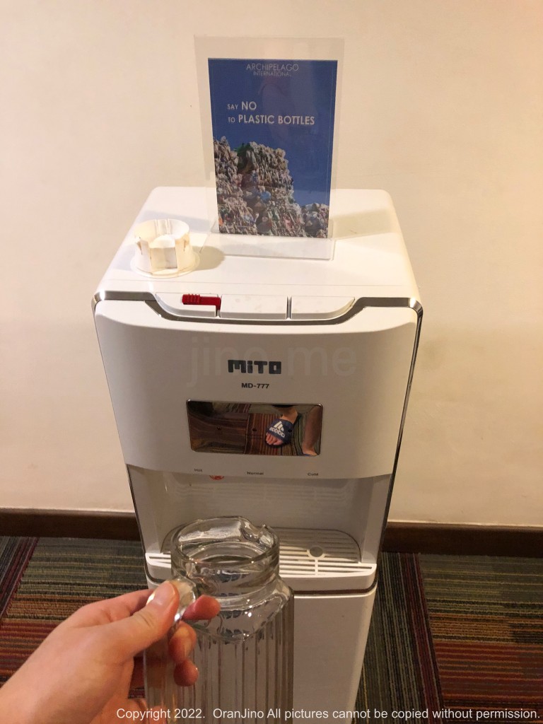 일회용 플라스틱 사용을 줄이기 위해 층마다 놓인 정수기에 유리 물통으로 물을 받아갈 수 있는데, 이거 꽤 마음에 듭니다. 다르게 말하면 식수가 무제한이라는 것이죠. 물이 모자라도 따로 살 필요가 없습니다.