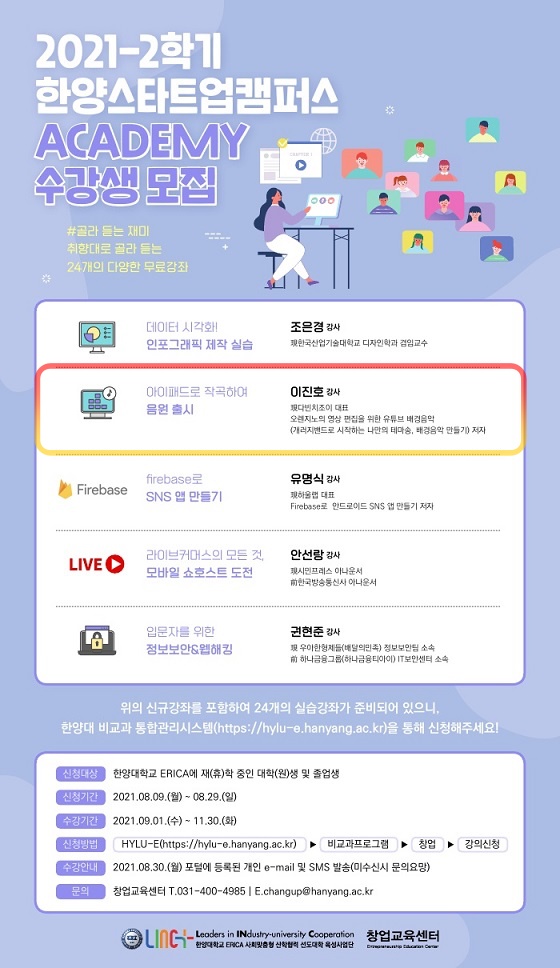 이번주부터 한양대 ERICA에 재학, 휴학중인 대학생, 대학원생 및 졸업생을 대상으로 오픈된 강의입니다.
