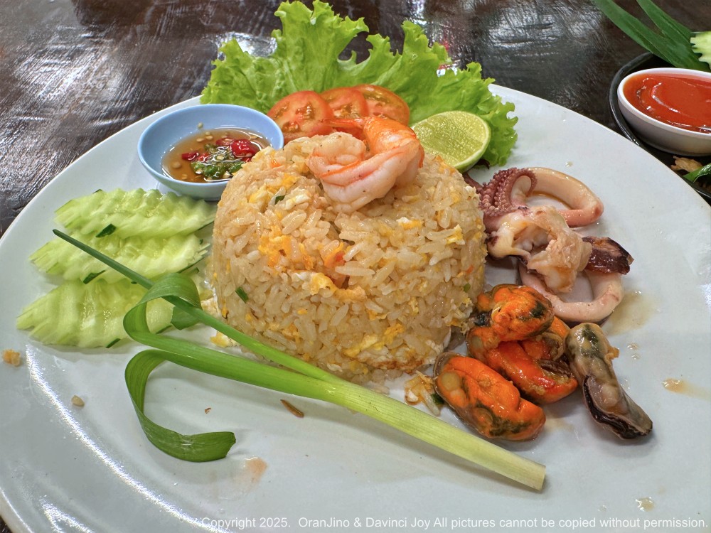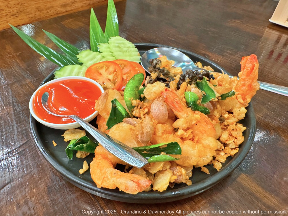 혼자 가서 주문한 것은 새우튀김 요리와 해산물 볶음밥이었는데요, 꽤 괜찮은 맛이었습니다. 특히 치앙마이에서 볶음밥을 주문하면 이렇게 쪽파를 함께 주는데, 같이 씹어 먹으며 깔끔하게 즐기는 것도 나름 재밌는 경험이었습니다.