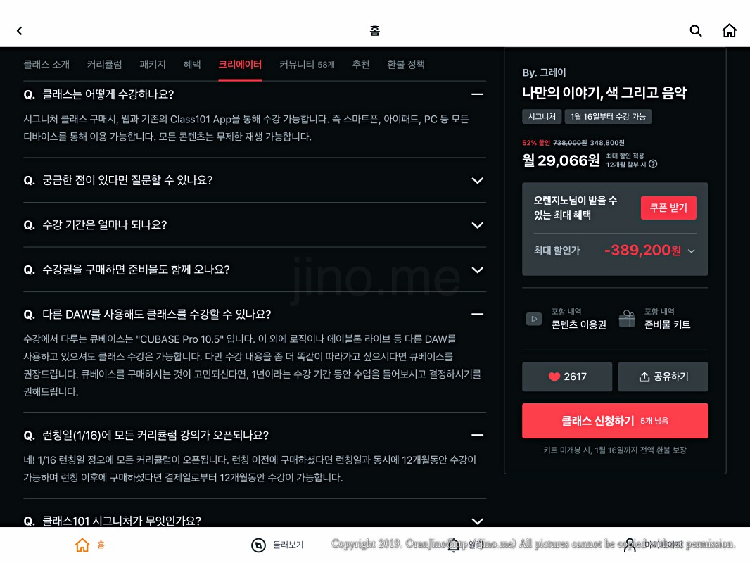요즘 온라인 강의 업계에서 가장 핫한 곳이 클래스101이 아닐까 싶네요. 제가 CLASS101을 알게 된 계기는 저 오렌지노의 아이패드 개러지밴드 강좌 개설 권유를 받고 살펴보니 상당히 잘 짜여진 플랫폼이었고, 그 뒤로 몇몇 지인들에게 클래스101에 대한 소식을 들으면서 신뢰도가 높아진 곳입니다.