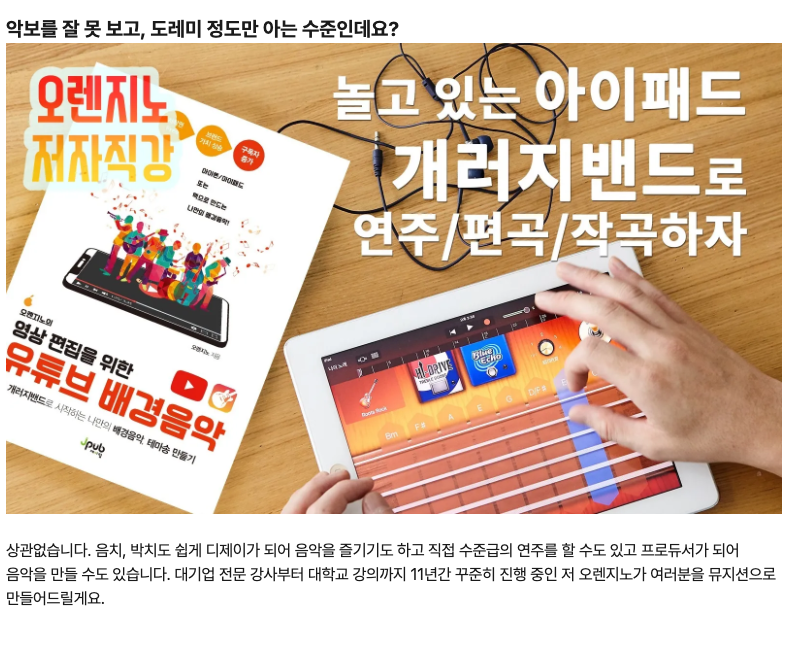 오렌지노의 영상 편집을 위한 유튜브 배경음악 - 개러지밴드로 시작하는 나만의 배경음악, 테마송 만들기 / 나는 아이폰 아이패드로 음악한다 / 나는 개러지밴드로 음악한다