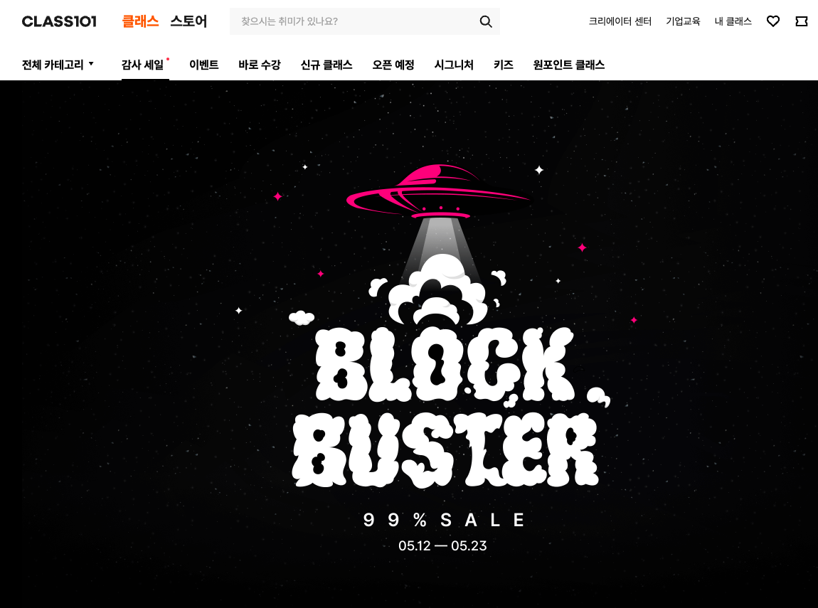 클래스101의 블록버스터 할인 이벤트가 시작되었습니다. 취미 강의 등 온라인 강좌에선 우리나라 최고 플랫폼인 CLASS101의 할인은 늘 무언가를 배울 기회가 되죠.