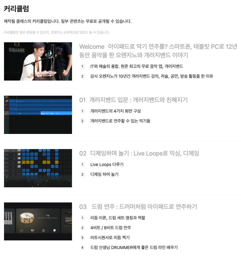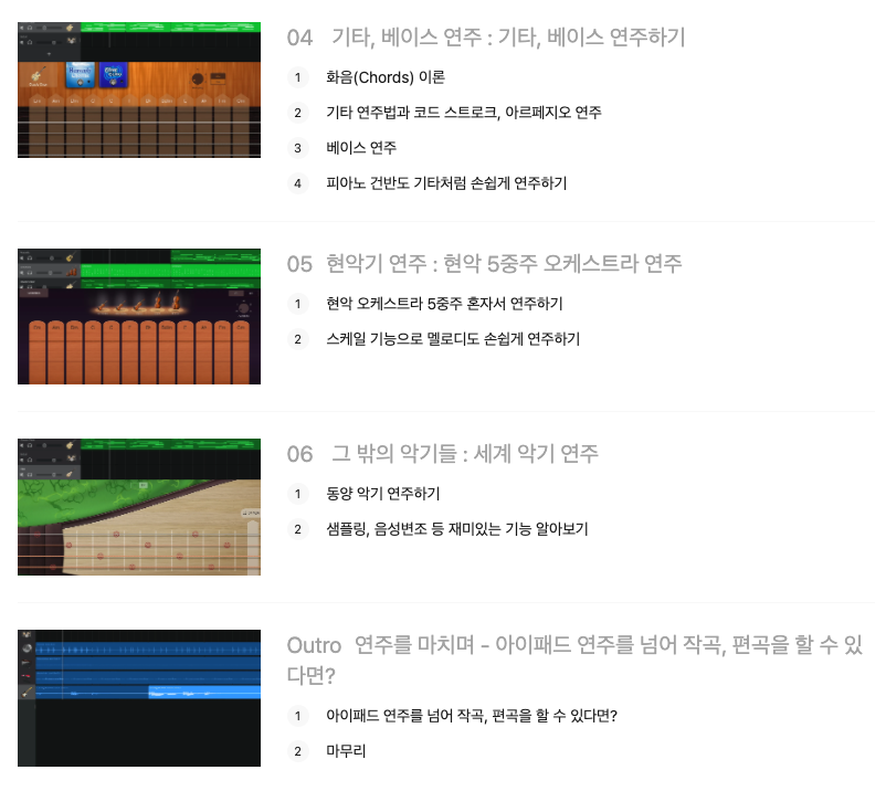 제 교재만 자세히 보셔도 사실상 개러지밴드를 잘 다루실 수 있겠지만, 강의를 함께 들으면 훨씬 빠르게 익힐 수 있겠죠. 아무래도 음악 강의는 책보다 영상이 더 효과적일 수밖에 없습니다.